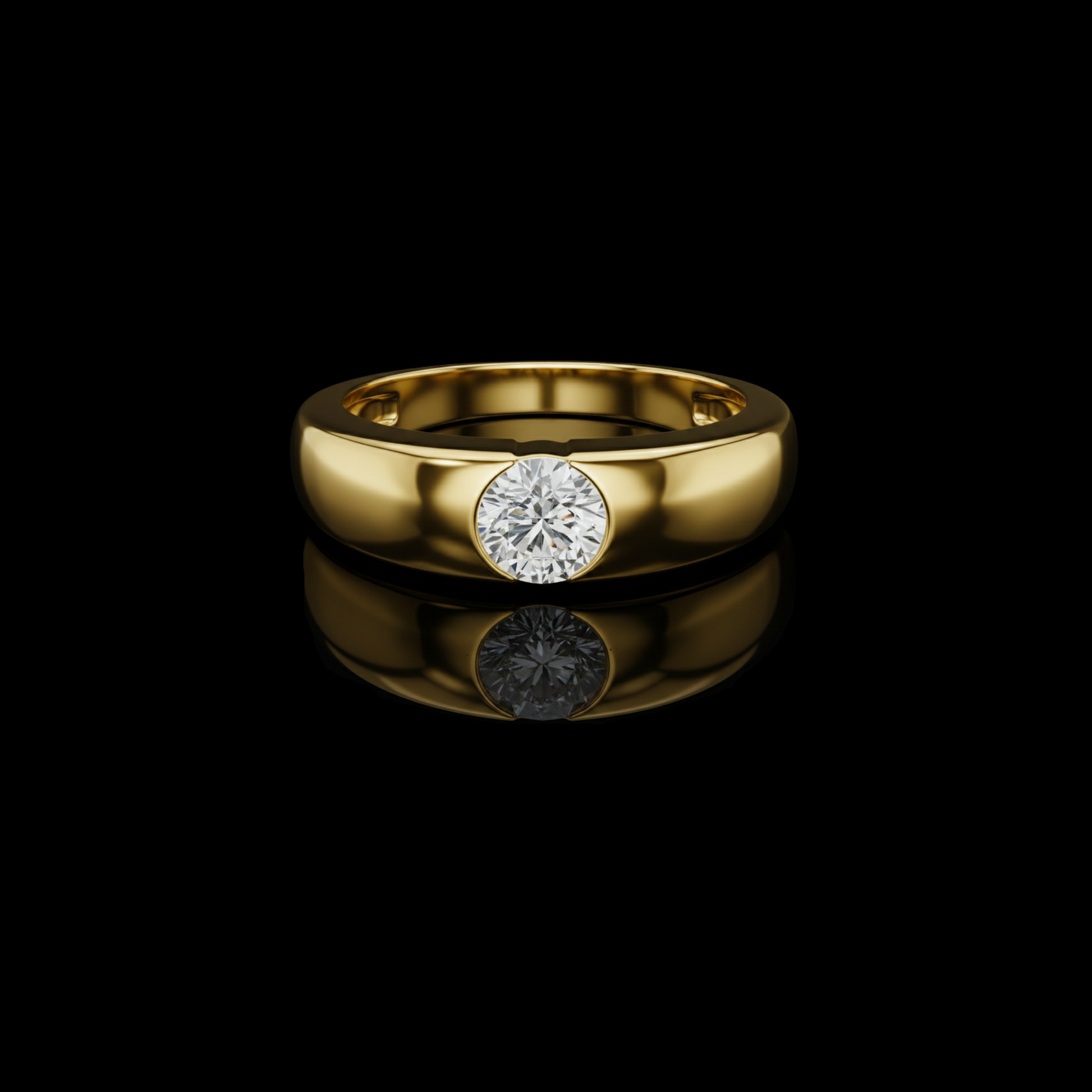 Crafted for those who appreciate refined simplicity and enduring beauty, the Eternal Gleam Solitaire Ring is a celebration of modern elegance. Featuring a radiant round-cut diamond securely nestled in a sleek bezel setting, this ring offers both brilliance and durability.The high band provides a smooth, contemporary silhouette that feels luxurious yet understated. Perfect as a statement of love, commitment, or personal achievement, this design seamlessly blends classic sophistication with modern minimalism.