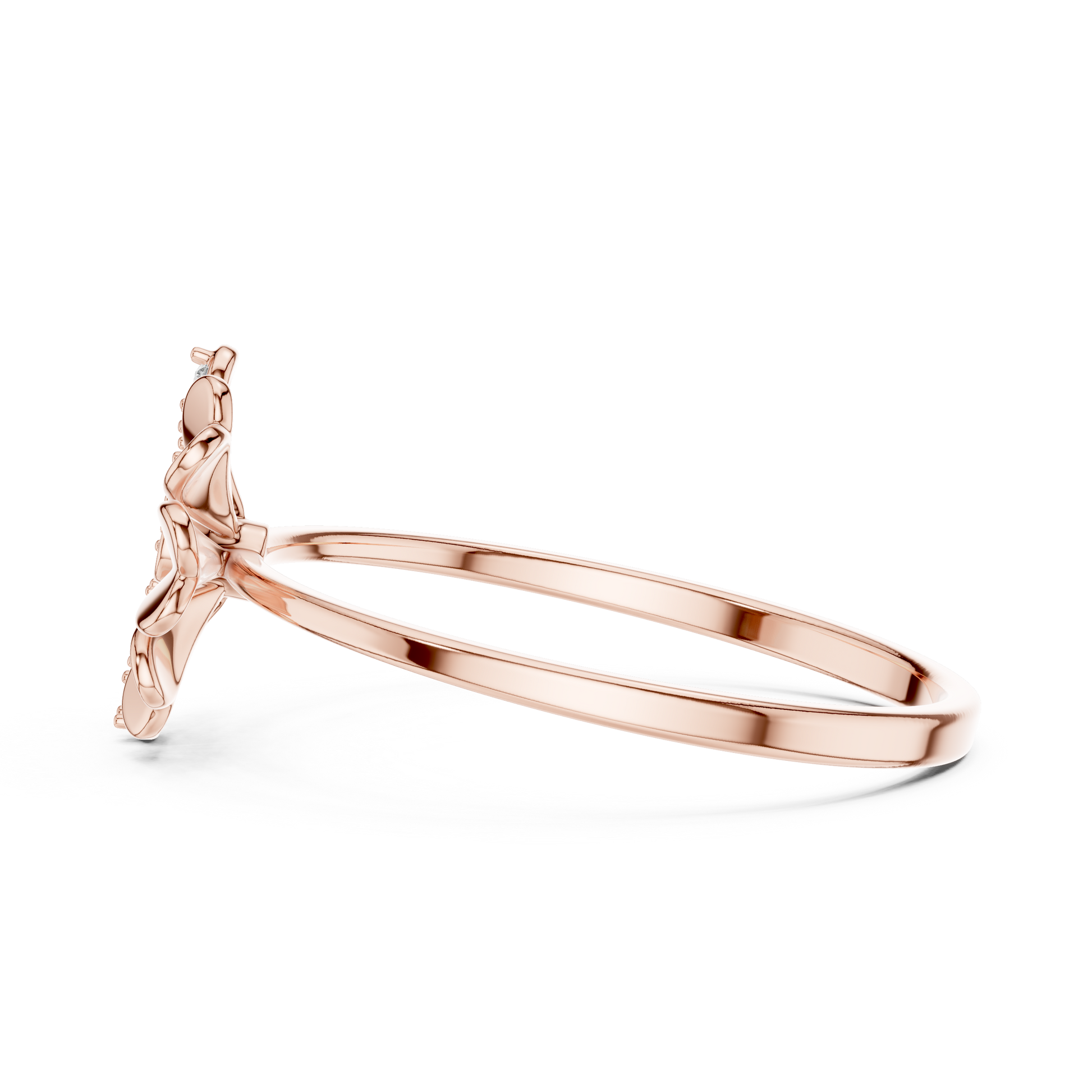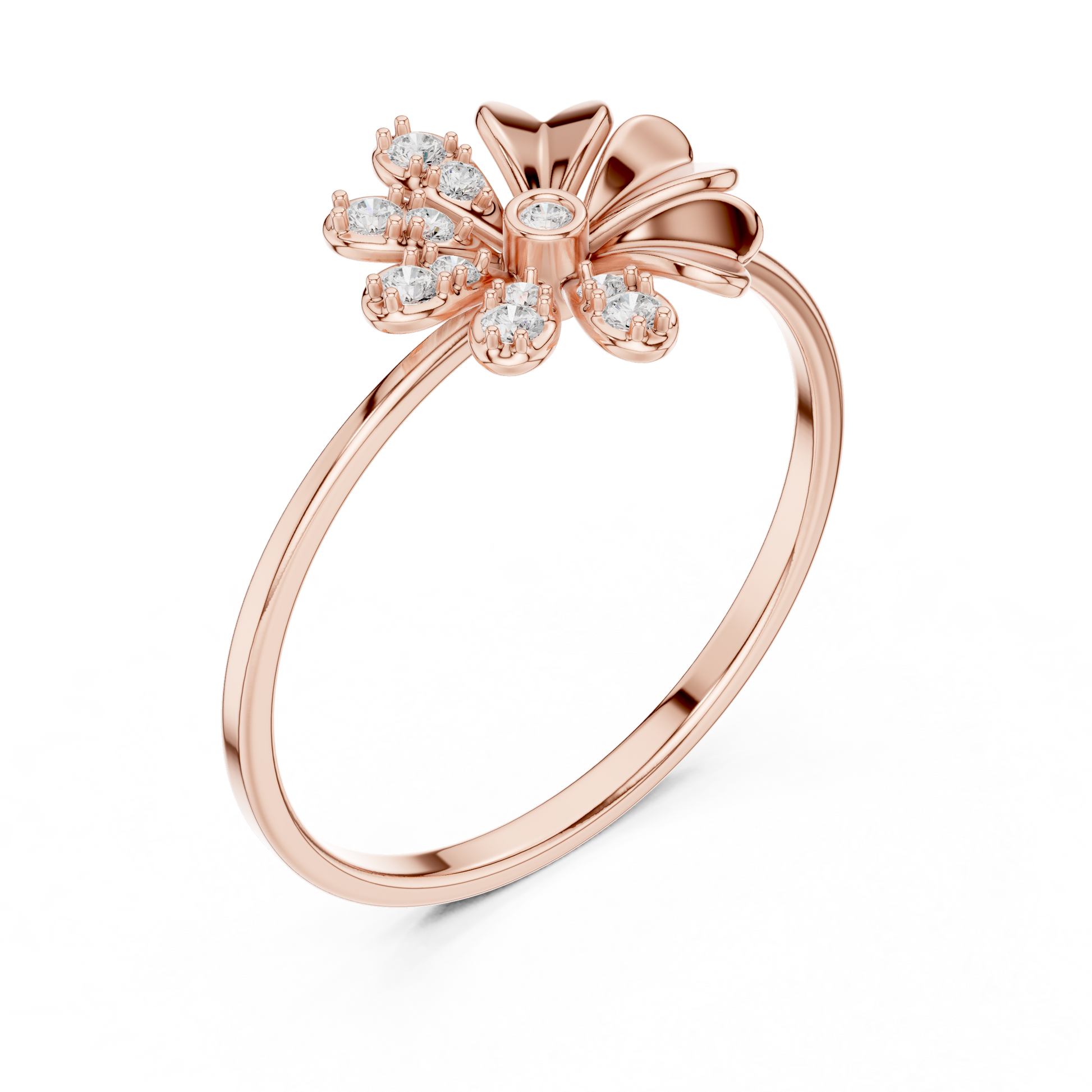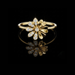 This enchanting ring showcases a beautifully crafted asymmetrical floral motif, where half the petals glisten with brilliant-cut diamonds while the other half shine with smooth gold. The contrasting textures create a captivating balance of sparkle and elegance, making it a standout piece for anyone who loves jewelry that combines artistic design with luxurious craftsmanship.