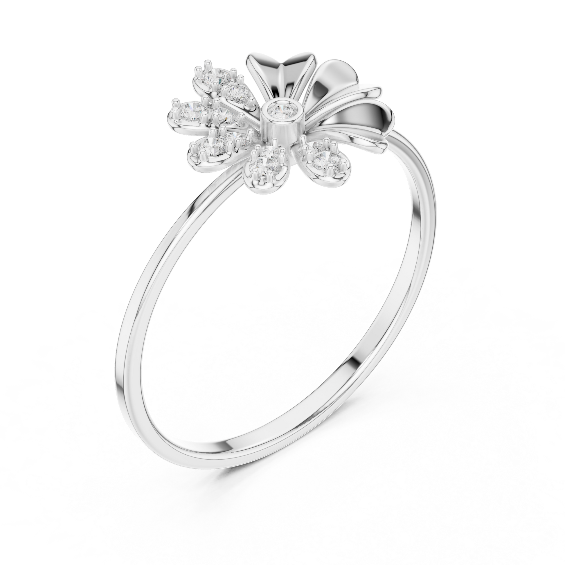 0.008 CT Daisy Flower Moissanite Round Cut Diamond Floral Ring Jewelry for Women