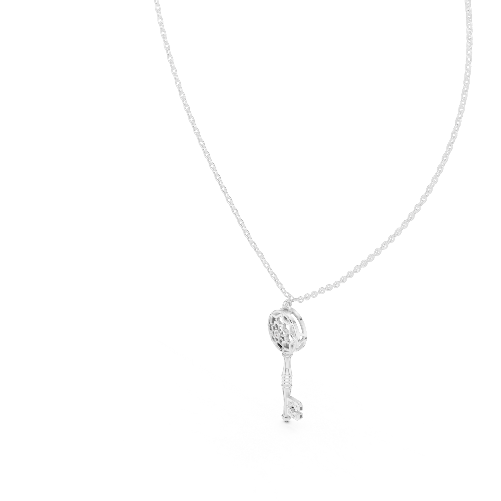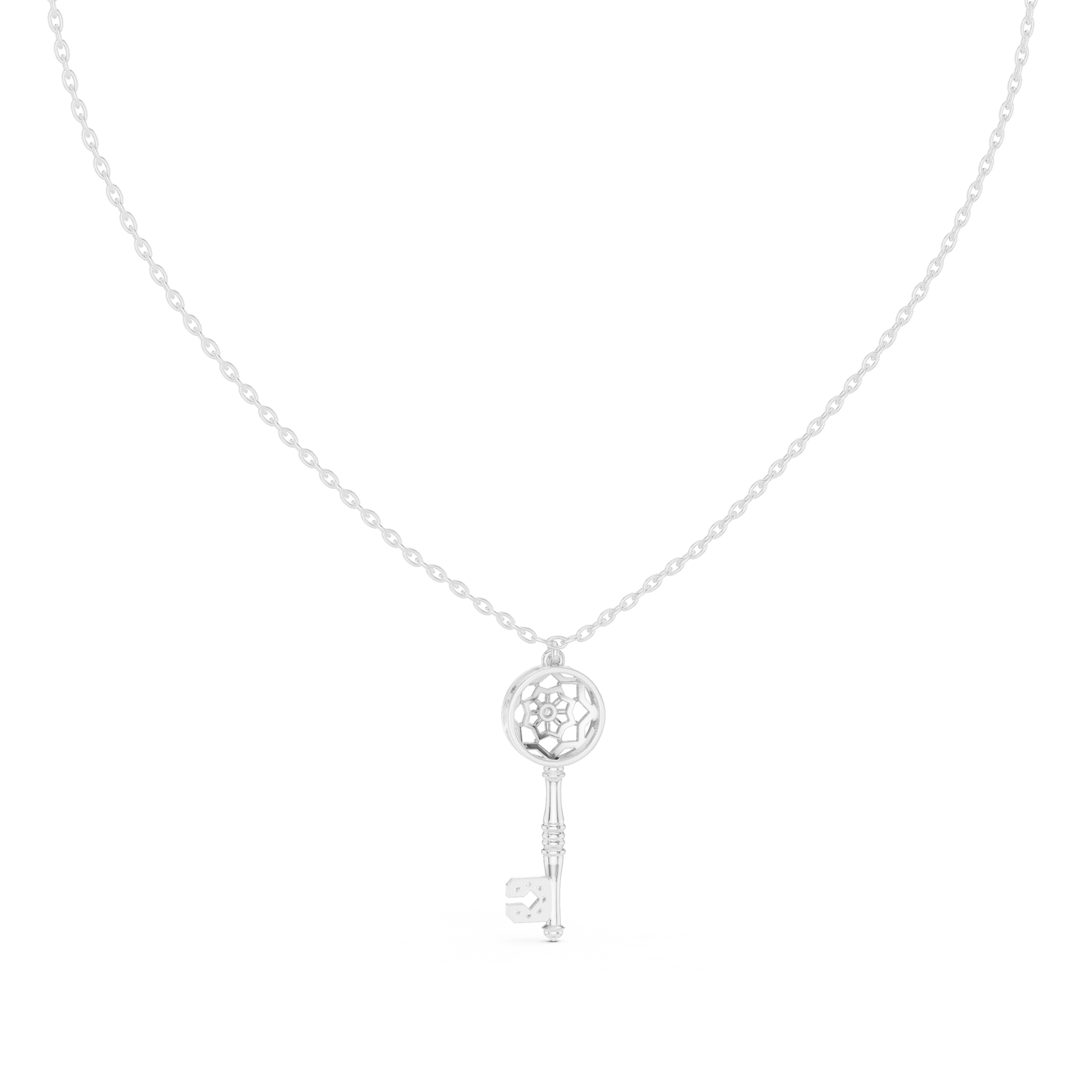 0.01 TCW Elegant Key Moissanite Pendant with Geometric Lattice Design and Diamond Accent