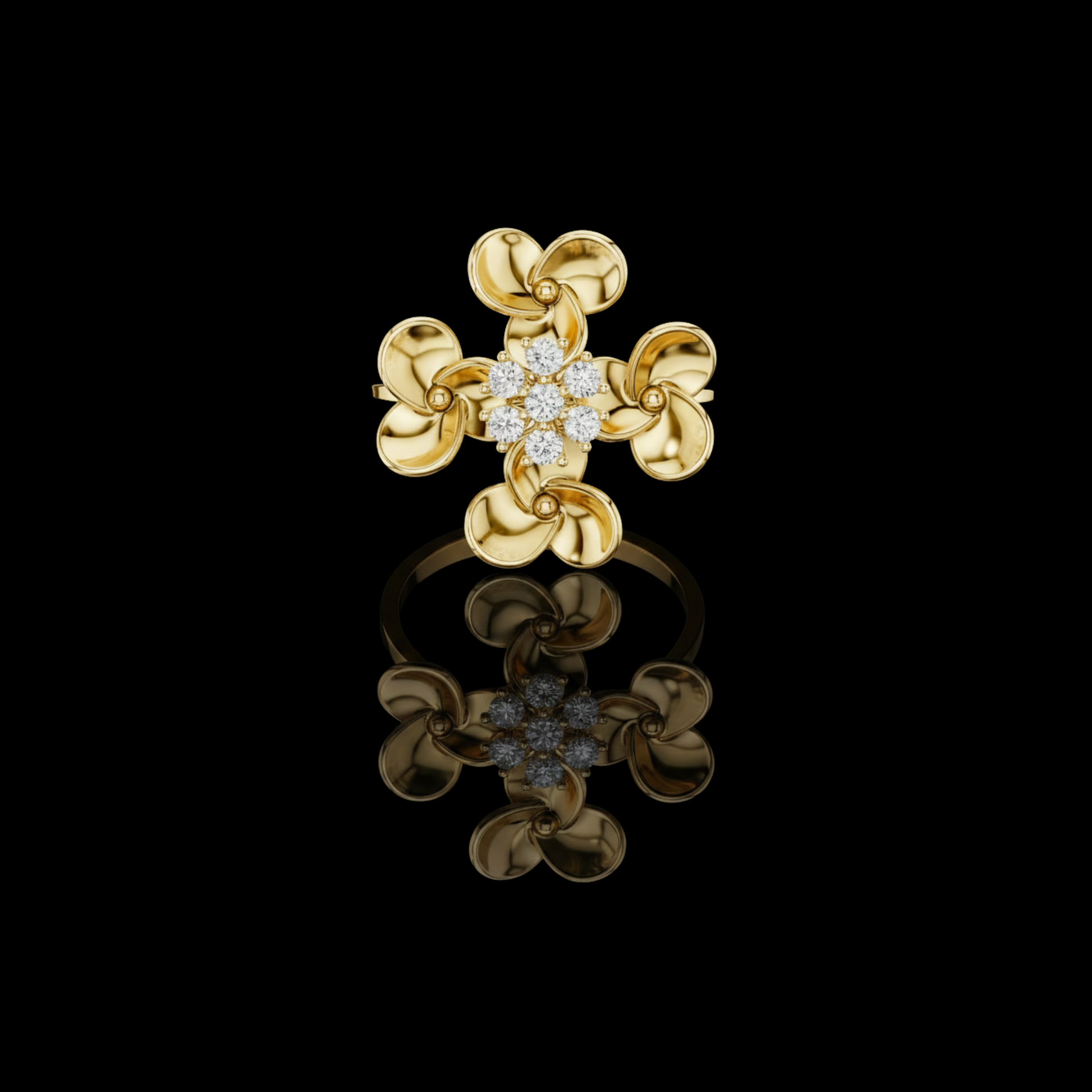 Elevate your style with this exquisite floral petal ring, masterfully designed to resemble a blooming flower in full radiance. The four sculpted petals surround a brilliant cluster of sparkling Round diamonds, creating a captivating blend of texture, shine, and timeless elegance.