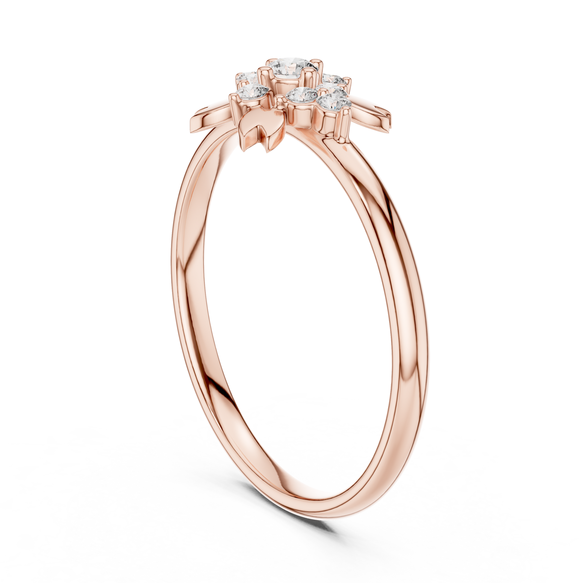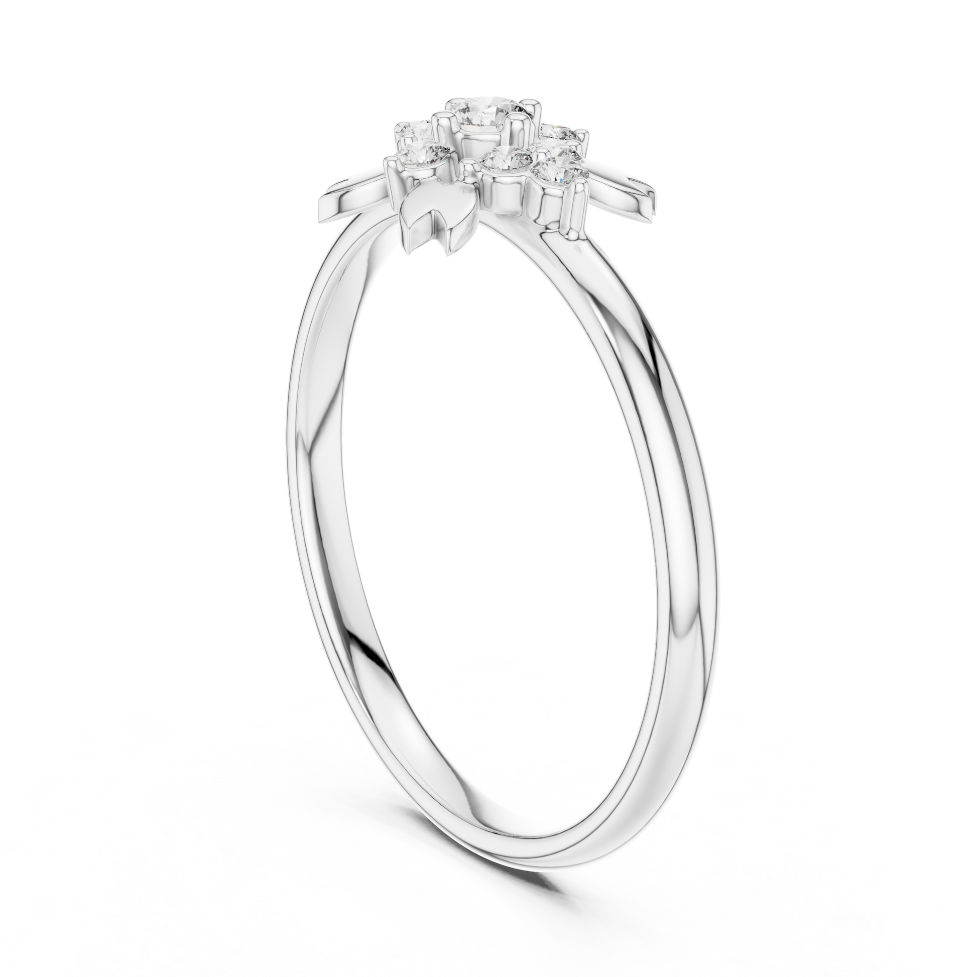This thoughtfully designed ring features brilliant-cut Round diamonds arranged in a delicate flower bloom, enhanced by soft, rounded petals that frame the centerpiece with natural beauty. Its refined craftsmanship offers a blend of luxury and romantic artistry, making it an ideal choice for gifting or personal enjoyment.