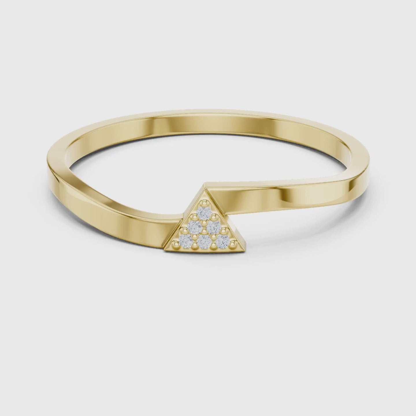A sleek blend of modern design and delicate sparkle, this minimalist triangle pavé diamond ring features a polished gold band accented with a tiny geometric triangle set with shimmering round diamonds. Its clean lines and lightweight silhouette make it perfect for everyday wear, stacking, or adding a subtle touch of contemporary elegance to any look. Effortlessly chic and uniquely stylish, this piece is a refined statement of simplicity and modern sophistication.