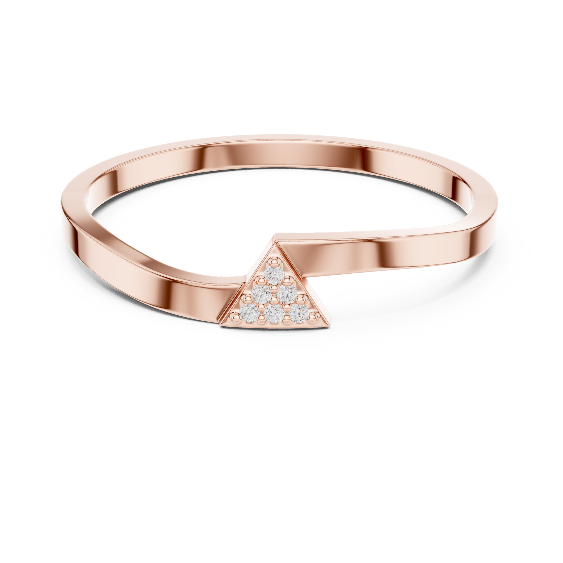 A sleek blend of modern design and delicate sparkle, this minimalist triangle pavé diamond ring features a polished gold band accented with a tiny geometric triangle set with shimmering round diamonds. Its clean lines and lightweight silhouette make it perfect for everyday wear, stacking, or adding a subtle touch of contemporary elegance to any look. Effortlessly chic and uniquely stylish, this piece is a refined statement of simplicity and modern sophistication.