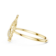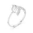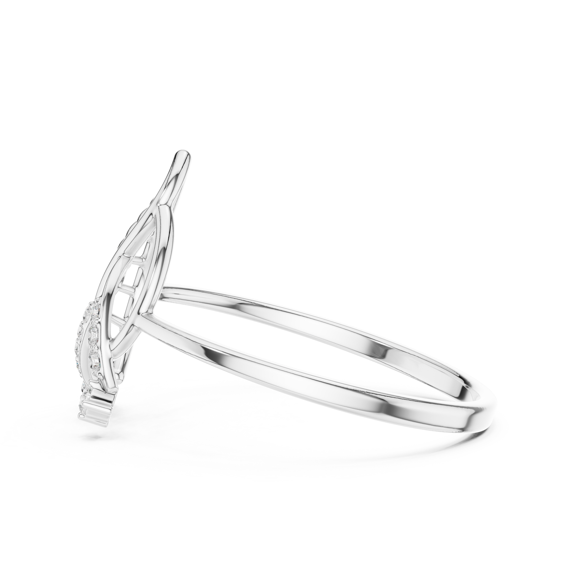 This exquisite ring features a beautifully sculpted leaf-inspired design crafted. The openwork filigree pattern creates a light and airy structure, highlighting the graceful organic curves of the leaf form. Flowing from the center are delicate arcs embellished with brilliant-Round cut diamonds, adding shimmer and sophistication. Each sparkling stone enhances the ring's natural motif, creating a harmonious balance between nature-inspired elegance and luxurious craftsmanship.