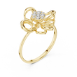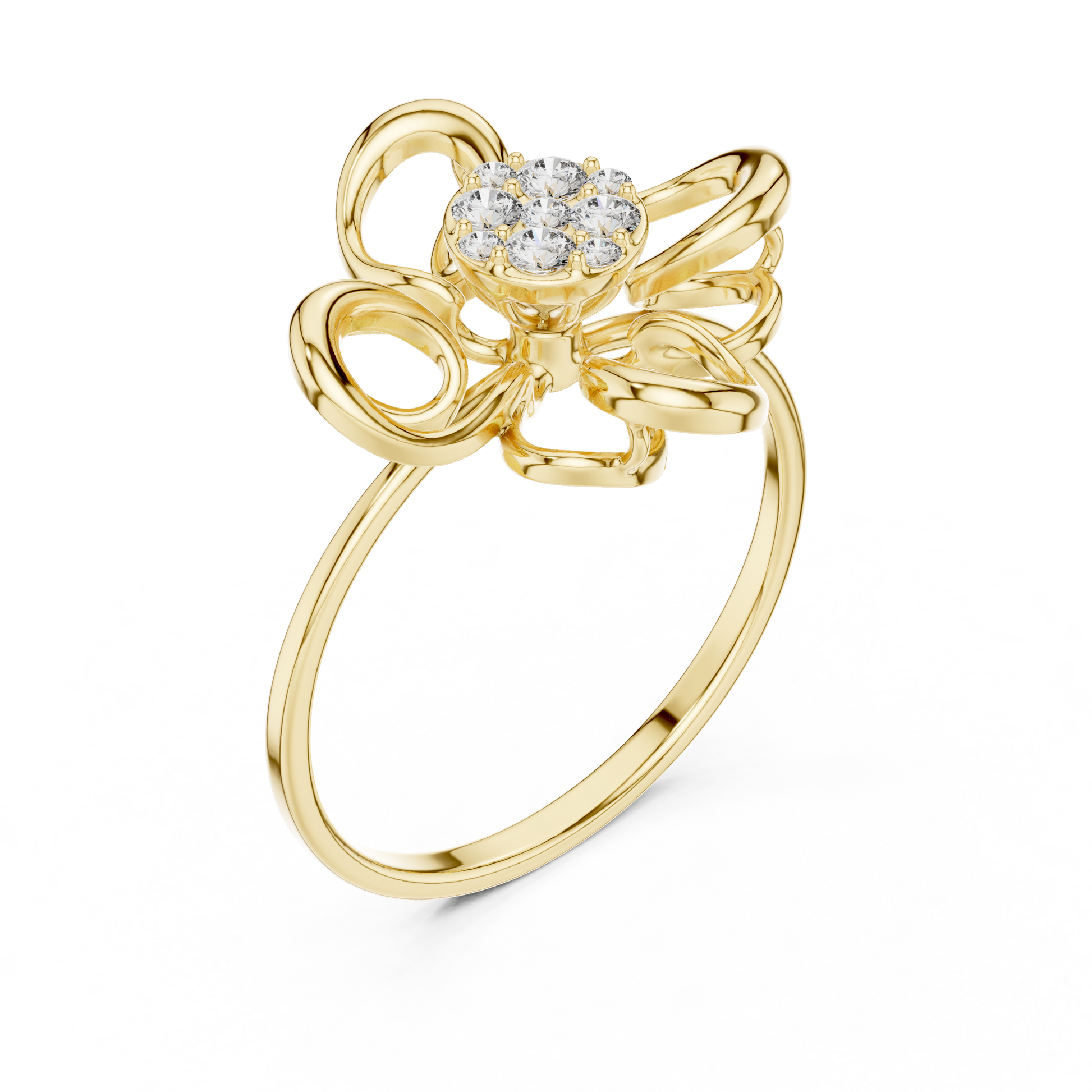 Elevate your elegance with this stunning floral-inspired gold ring, masterfully crafted to showcase both sophistication and charm. The ring features graceful swirling loops in rich, forming a delicate flower motif that captures light from every angle. At the heart of this captivating design lies a brilliant diamond cluster, arranged to create exceptional sparkle and refined brilliance.
