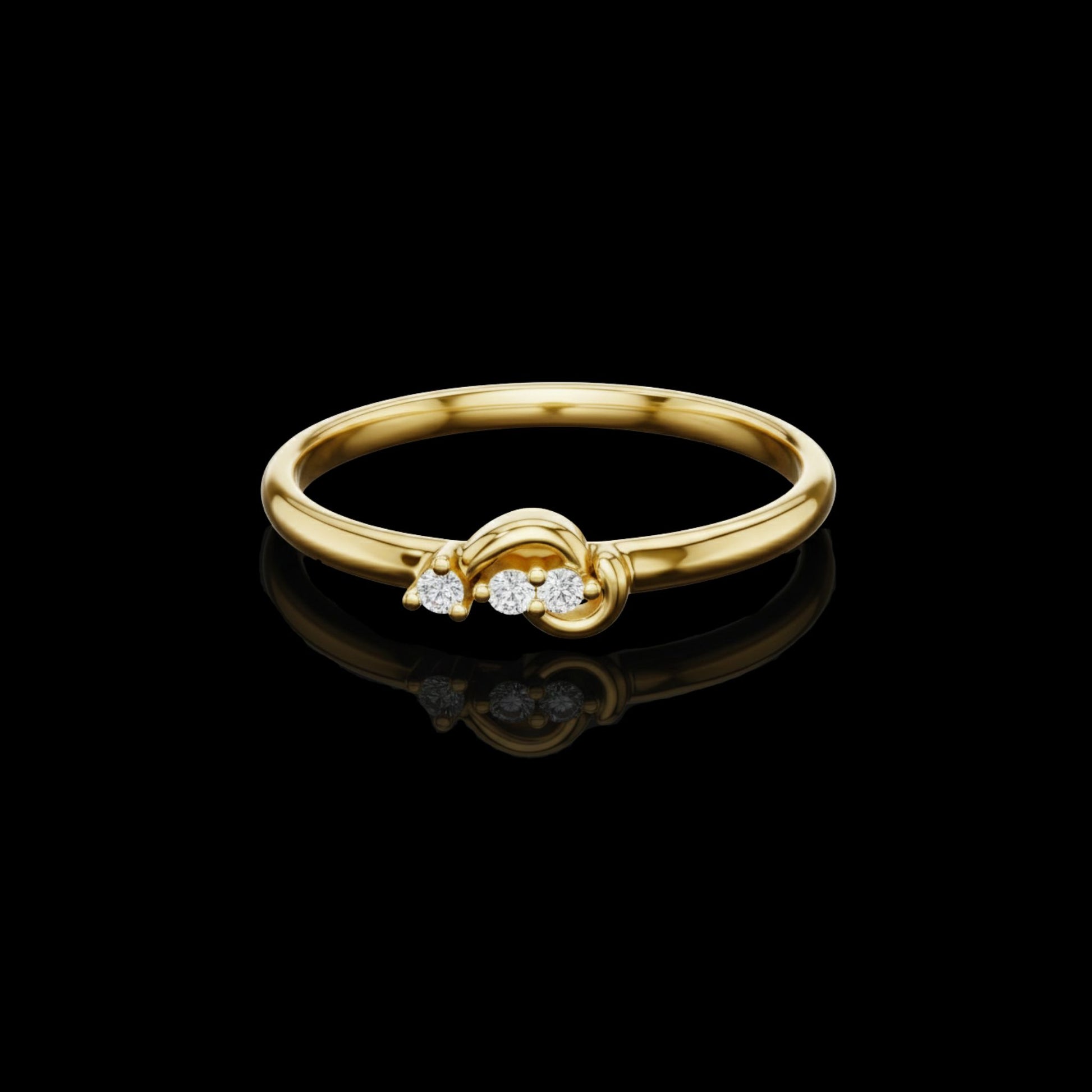 This elegant ring showcases a smooth gold band gracefully embracing three sparkling diamonds in a flowing, wave-inspired setting. Its refined curves and radiant stones create a perfect balance of sophistication and subtle charm, ideal for everyday wear or meaningful gifting. The piece beautifully reflects timeless elegant diamond artistry, making it a standout symbol of grace and style.