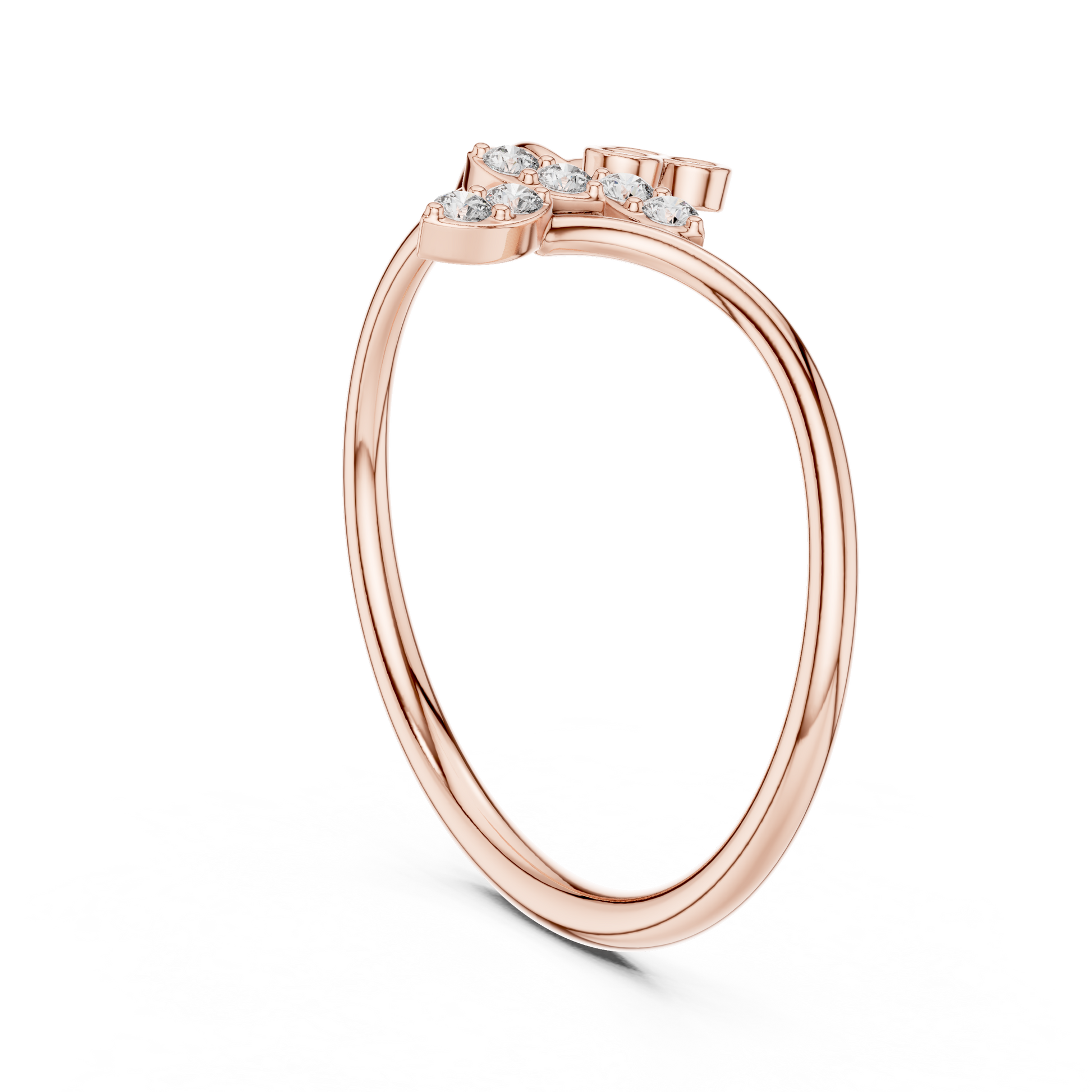 Celebrate elegance with this exquisitely crafted floral gold ring, inspired by the gentle beauty of nature. Made in radiant, the design showcases a flowing leaf motif accented with sparkling pavé diamonds, while a cluster of three round diamonds forms a charming mini blossom at the top.