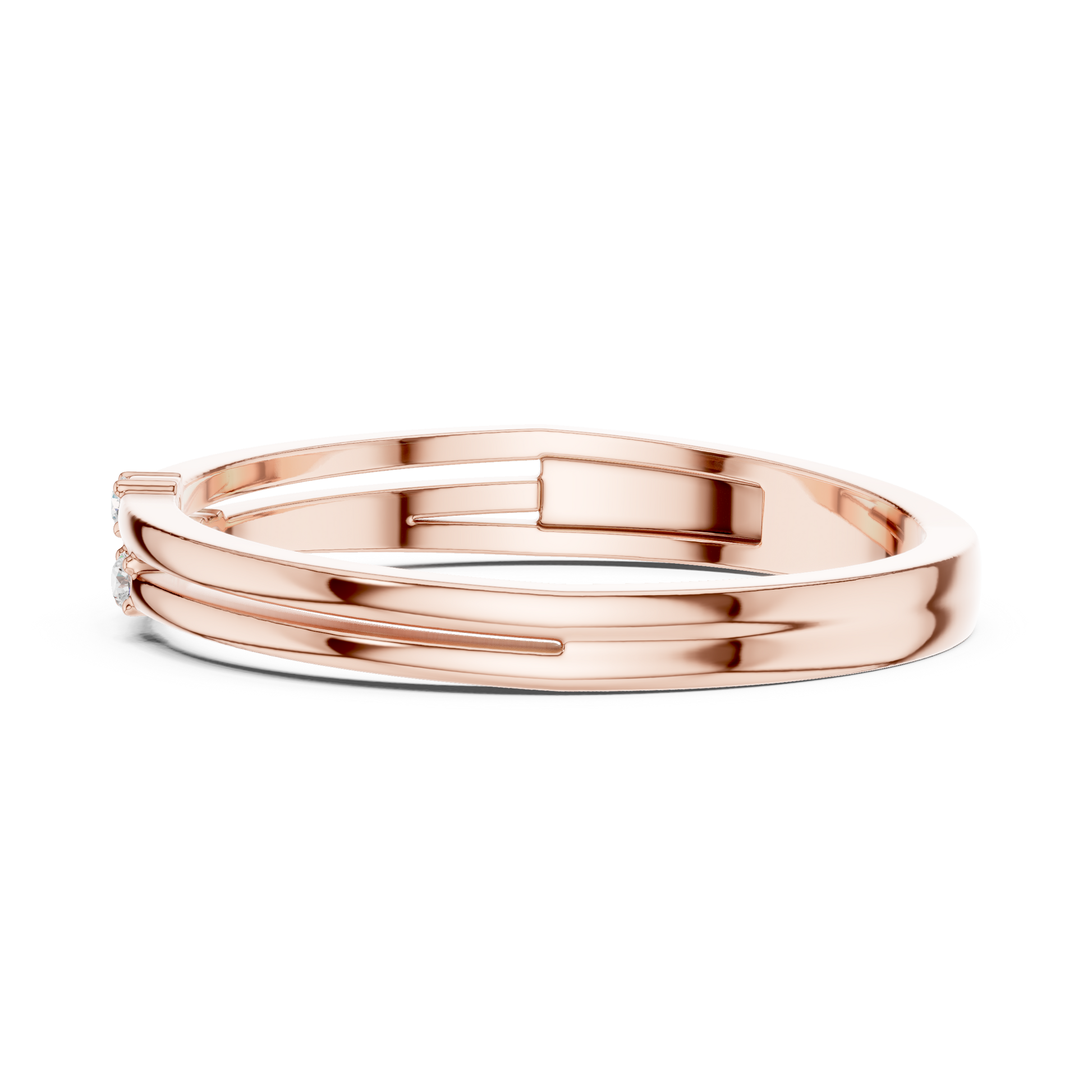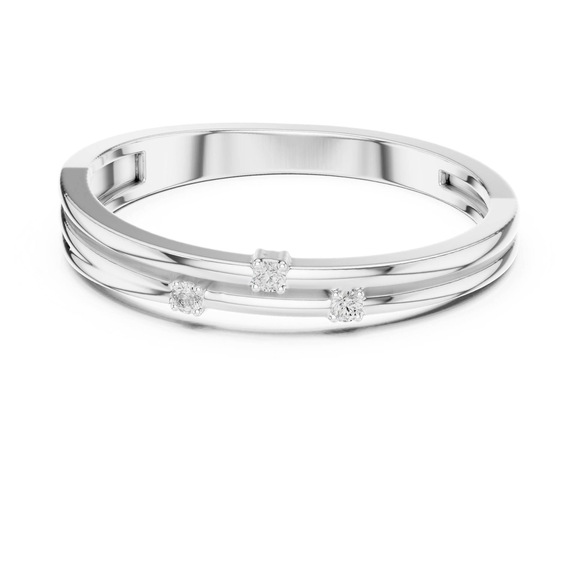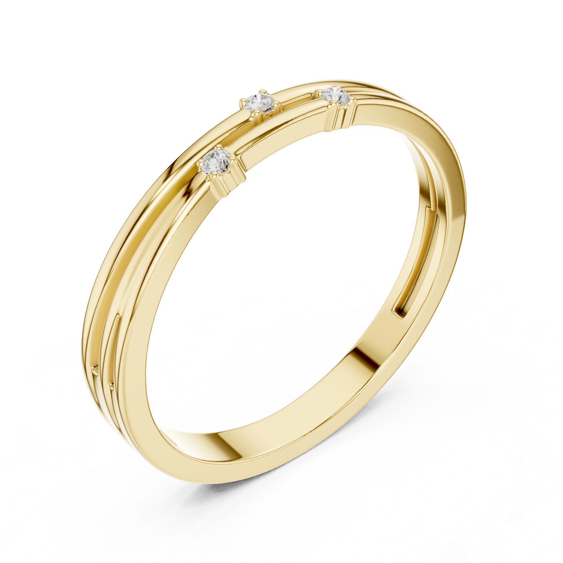 A refined blend of modern minimalism and everyday luxury, this double-row diamond band features sleek parallel gold strands accented with scattered round-cut diamonds for a touch of effortless sparkle. Expertly crafted in radiant gold, the design creates the illusion of a stacked ring while remaining lightweight and comfortable for daily wear. Its delicate silhouette and understated brilliance make it a perfect choice for stacking, gifting, or adding a subtle touch of elegance to any collection.