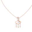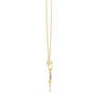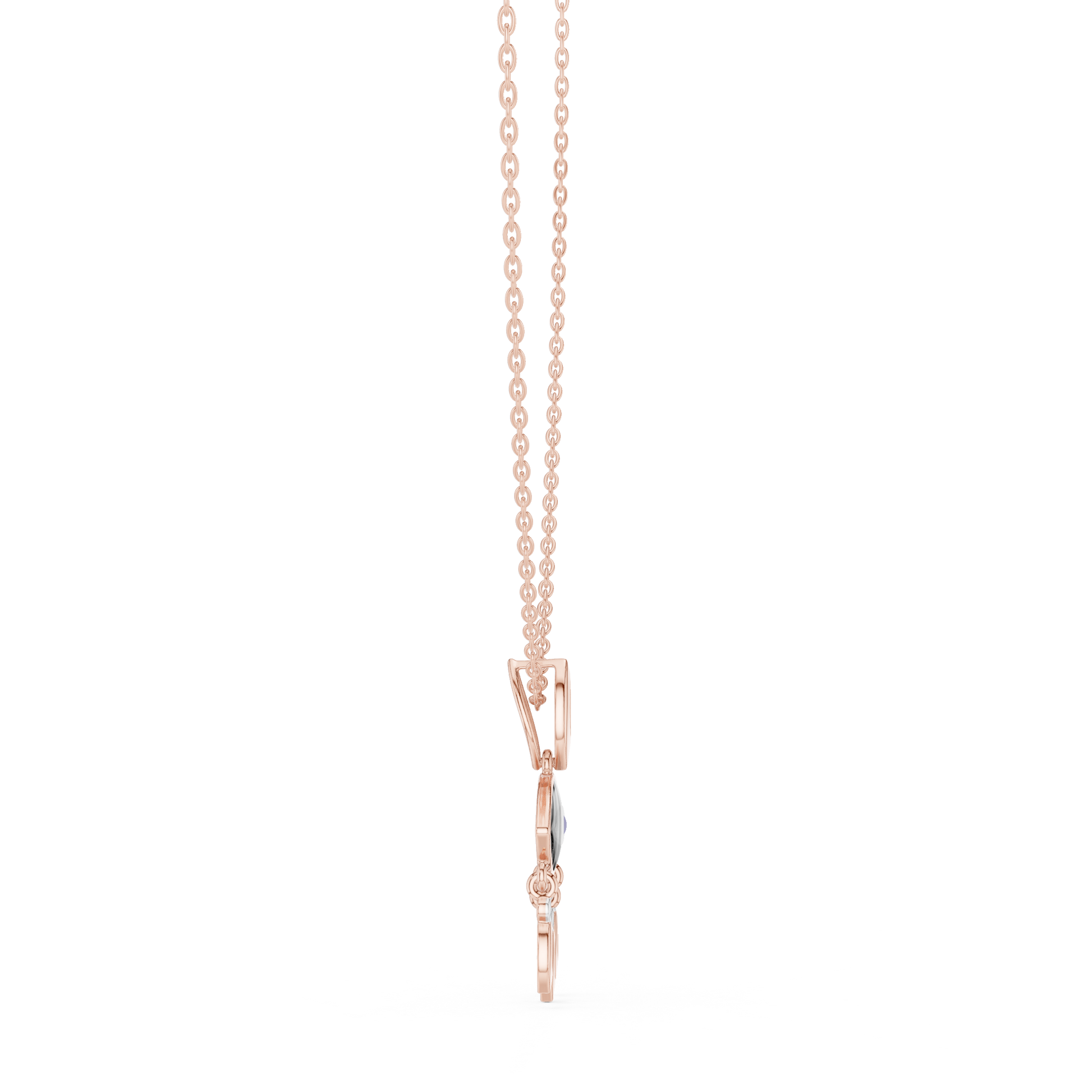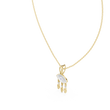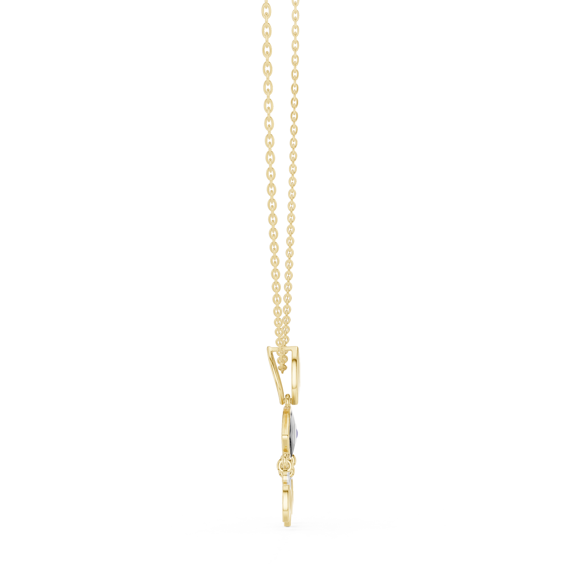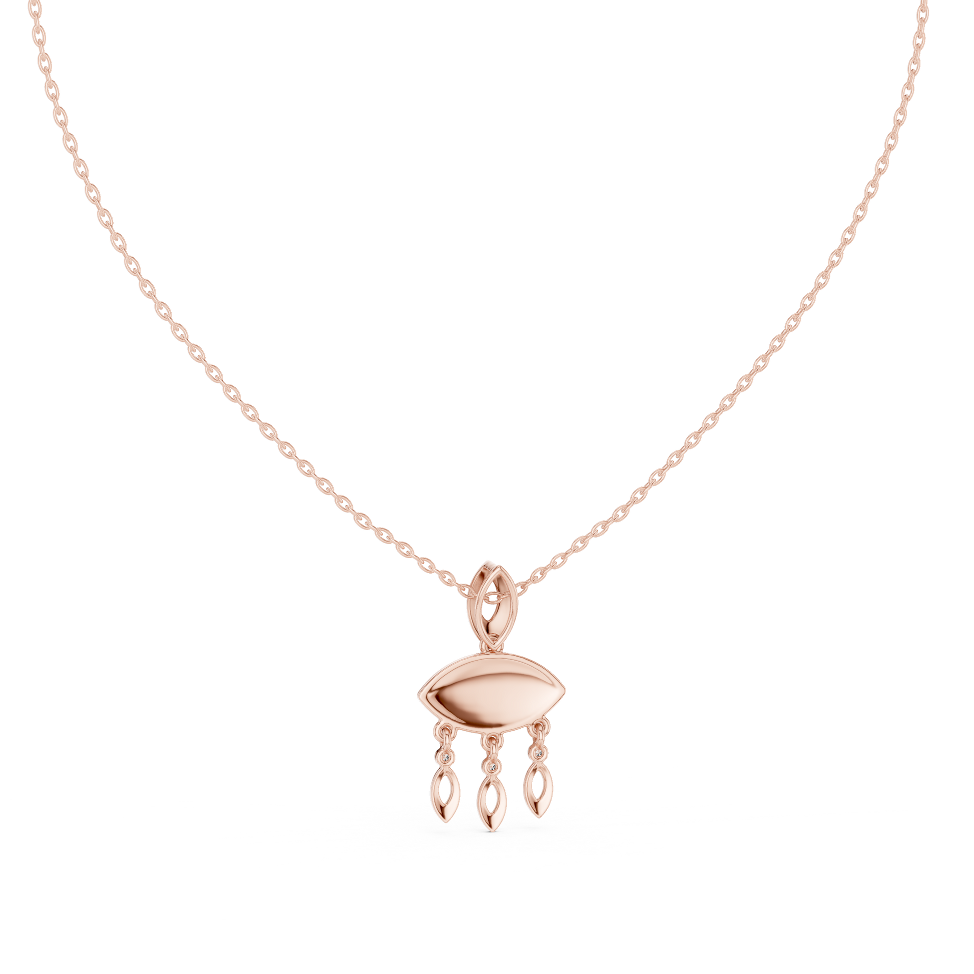 This striking gold evil eye pendant blends ancient symbolism with modern elegance, featuring a sleek eye-shaped form accented by a soft enamel pupil that represents protection and positive energy. Delicately suspended beneath the eye are graceful gold drops, each highlighted with subtle round diamond accents that add movement and refined sparkle. Finished with a polished gold bail and chain, this pendant is both meaningful and stylish—perfect for everyday wear as a symbol of protection and understated luxury.