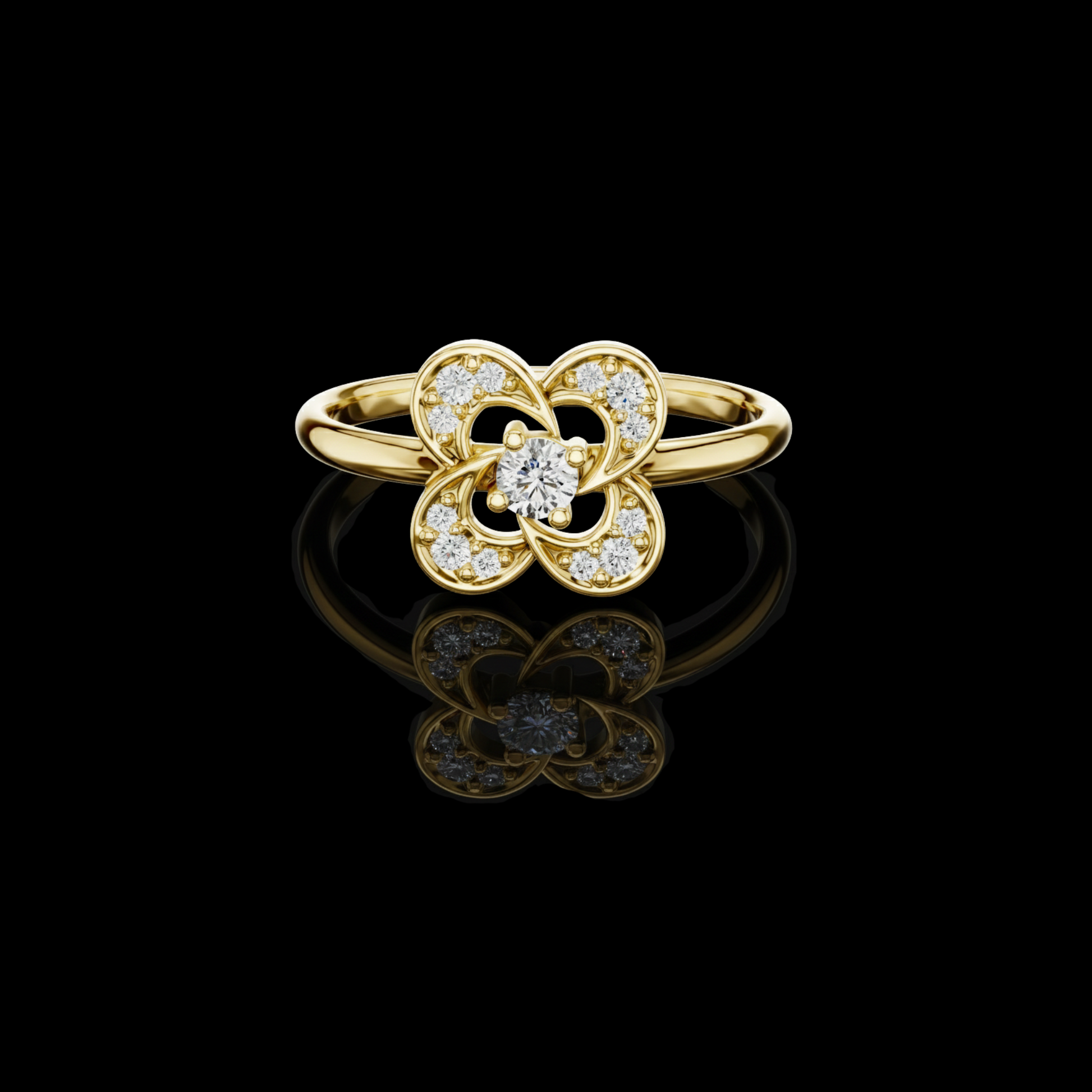 Celebrate timeless beauty with this enchanting diamond ring, meticulously designed in a delicate four-petal floral motif. At its heart sits a dazzling round-cut center diamond, framed by intricately arranged micro-pavé diamonds that add exceptional sparkle from every angle. The smooth, band enhances its luxurious feel, making this piece perfect for special occasions, romantic gifts, or adding a touch of refined sophistication to your everyday style.
