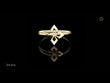 This exquisite ring showcases a delicate geometric floral motif crafted centered around a brilliant round-cut diamond that radiates elegance. The split band design is adorned with a row of sparkling accent diamonds, adding refined brilliance and depth. The unique combination of openwork diamond-shaped petals and polished gold gives this piece a modern yet timeless charm. Perfect for those who appreciate artful craftsmanship, sophisticated style, and distinctive jewelry design.