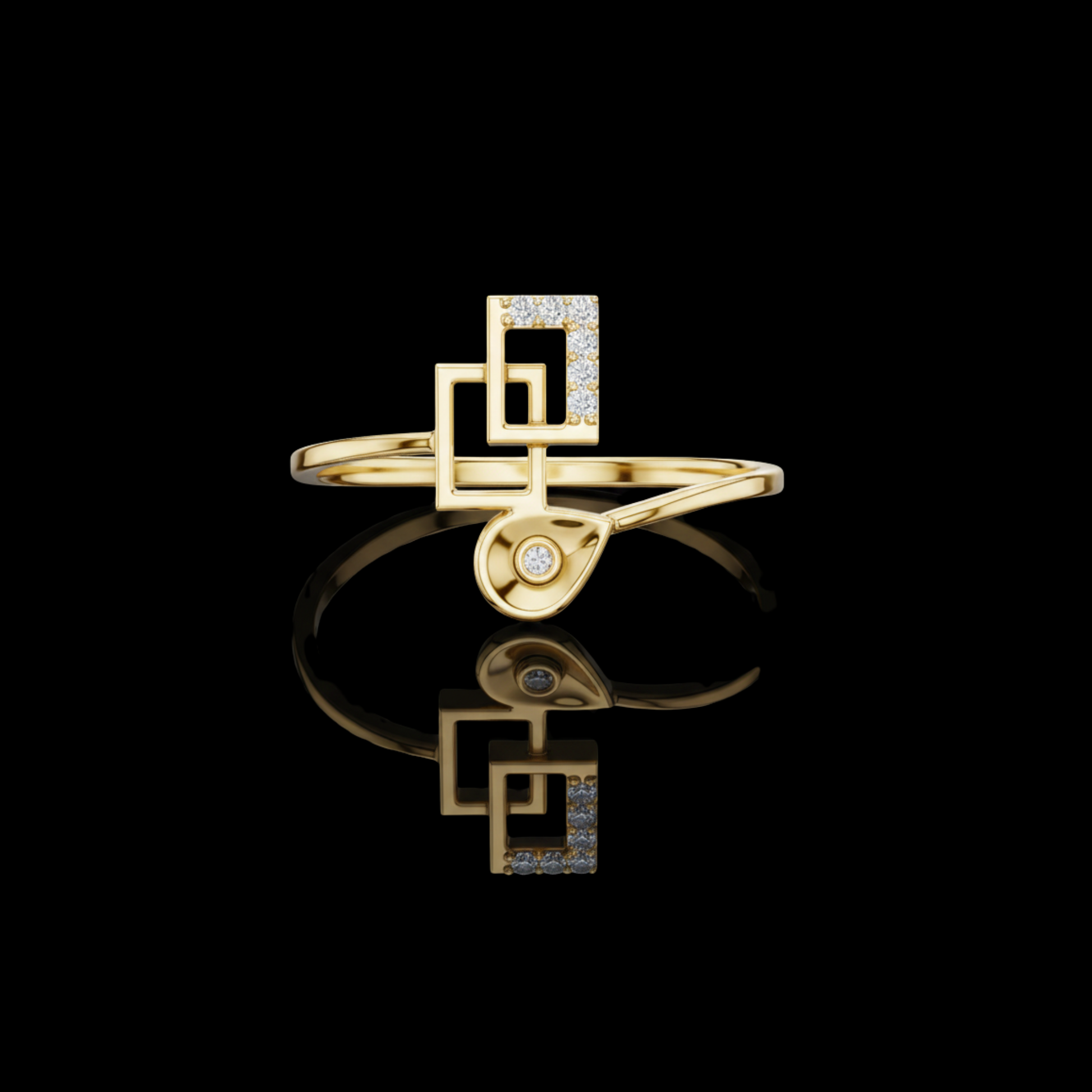 Elevate your style with this striking geometric ring, a perfect blend of modern artistry and luxurious finesse. Crafted in radiant, the design features a smooth tear-drop motif accented with a brilliant round diamond, seamlessly paired with cascading open rectangles—one of which is embellished with sparkling pavé diamonds for added brilliance.
