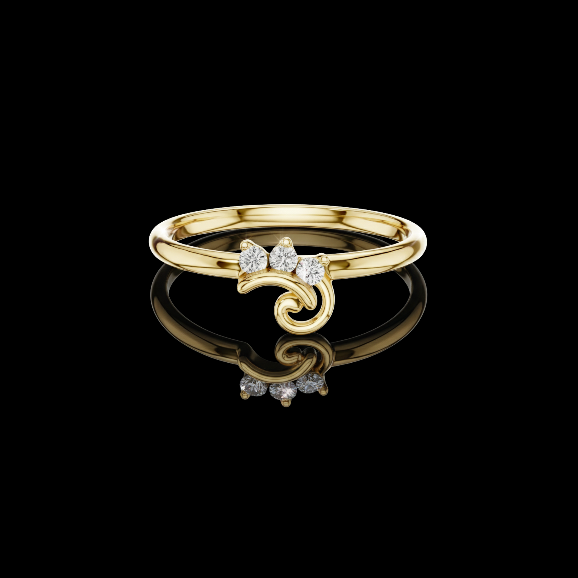 This exquisite ring showcases a beautifully crafted band that curves into an elegant swirl motif, symbolizing both grace and fluidity. At the heart of the design lie three dazzling round-cut diamonds, each set to maximize brilliance while complementing the ring’s artistic shape. Lightweight yet luxurious, this piece is perfect for daily wear or as a thoughtful gift that embodies sophistication, charm, and timeless beauty. Ideal for stacking or wearing on its own, it brings a subtle yet captivating sparkle to any style.