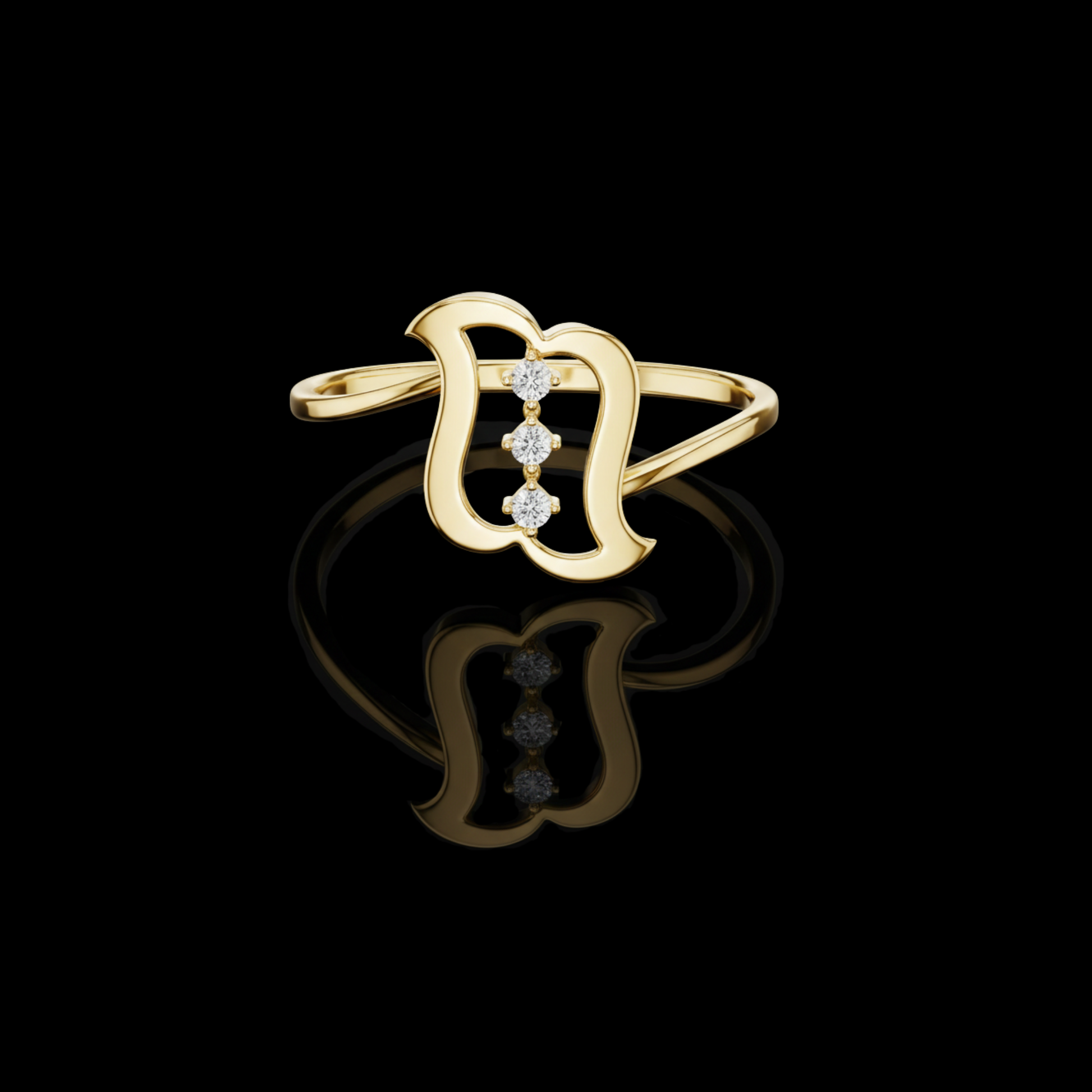 This refined ring showcases a graceful monogram-style design crafted in radiant forming a soft, flowing initial silhouette. At its center, a vertical line of three sparkling brilliant-cut diamonds adds luxurious shine and balance to the openwork shape. The blend of modern minimalism and classic personalization makes this ring a meaningful piece—perfect for everyday elegance or as a thoughtful, symbolic gift.