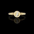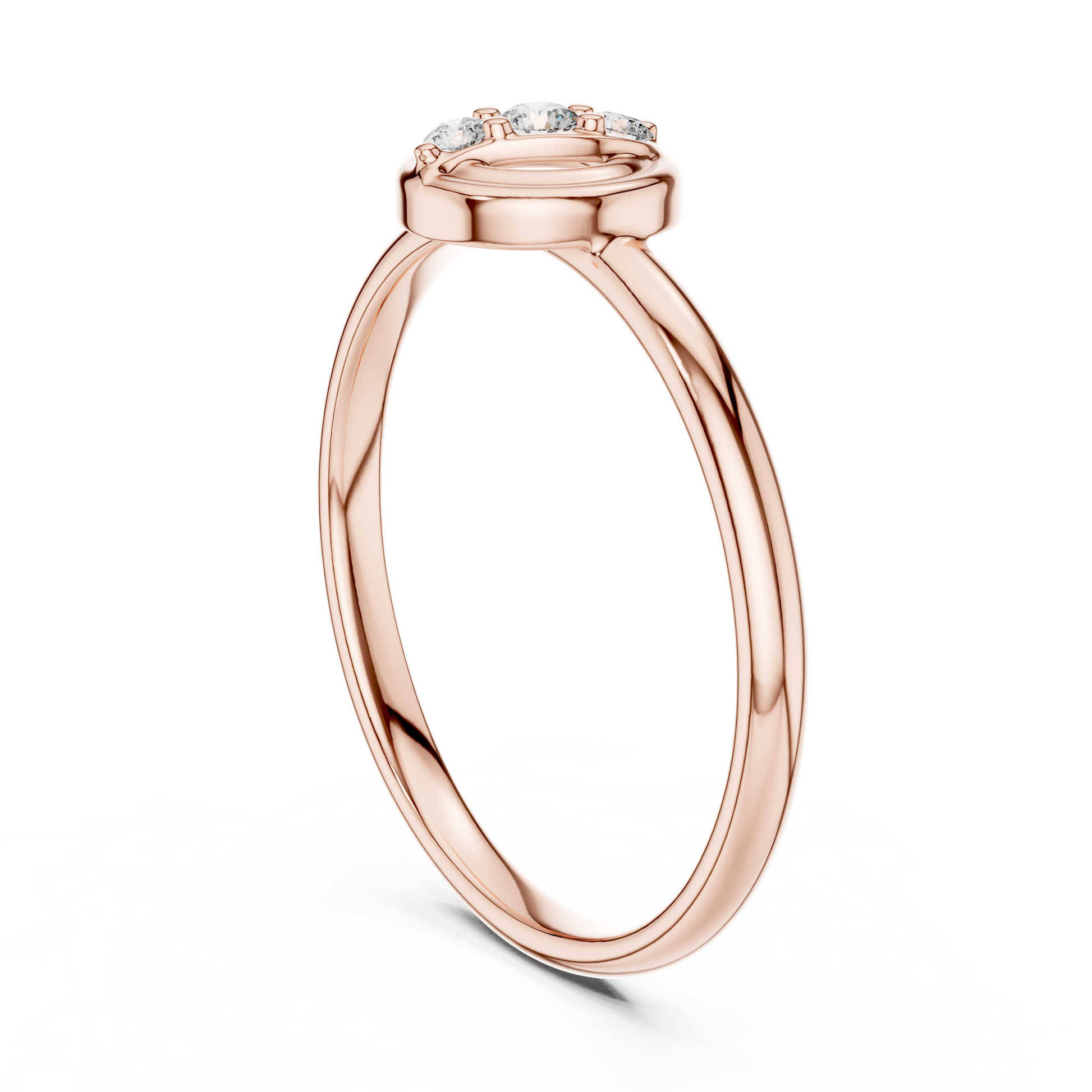 This elegant ring features a polished gold band that draws the eye to its distinctive circular centerpiece, where three sparkling round diamonds are set in a graceful vertical arrangement. The diamonds are framed by a sculptural, swirling gold design that adds depth and movement, giving the piece a modern yet timeless aesthetic. Perfect as a meaningful gift or a refined everyday accessory, it blends classic brilliance with artistic flair.