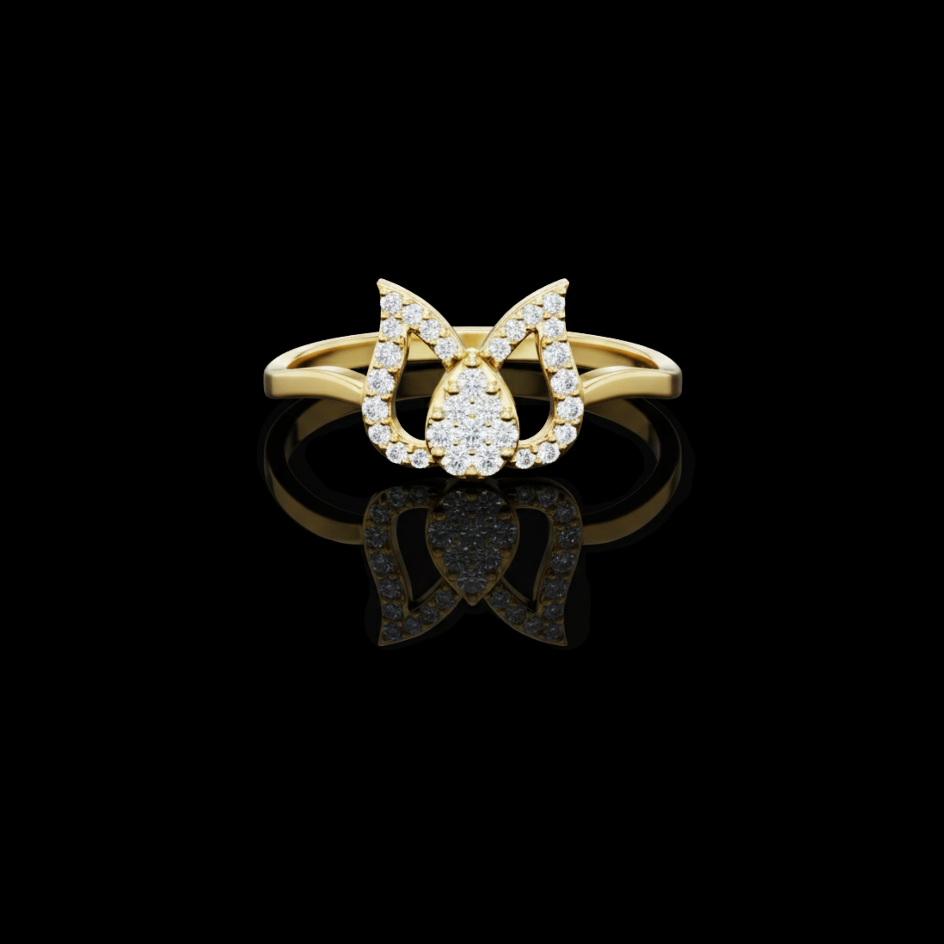 This stunning ring features a lotus-inspired design, symbolizing purity, grace, and new beginnings. Crafted in luxurious, the ring showcases a beautifully sculpted open-petal silhouette adorned with brilliant pavé-set diamonds. At the heart of the piece sits a dazzling teardrop diamond cluster, adding depth, sparkle, and timeless elegance.
