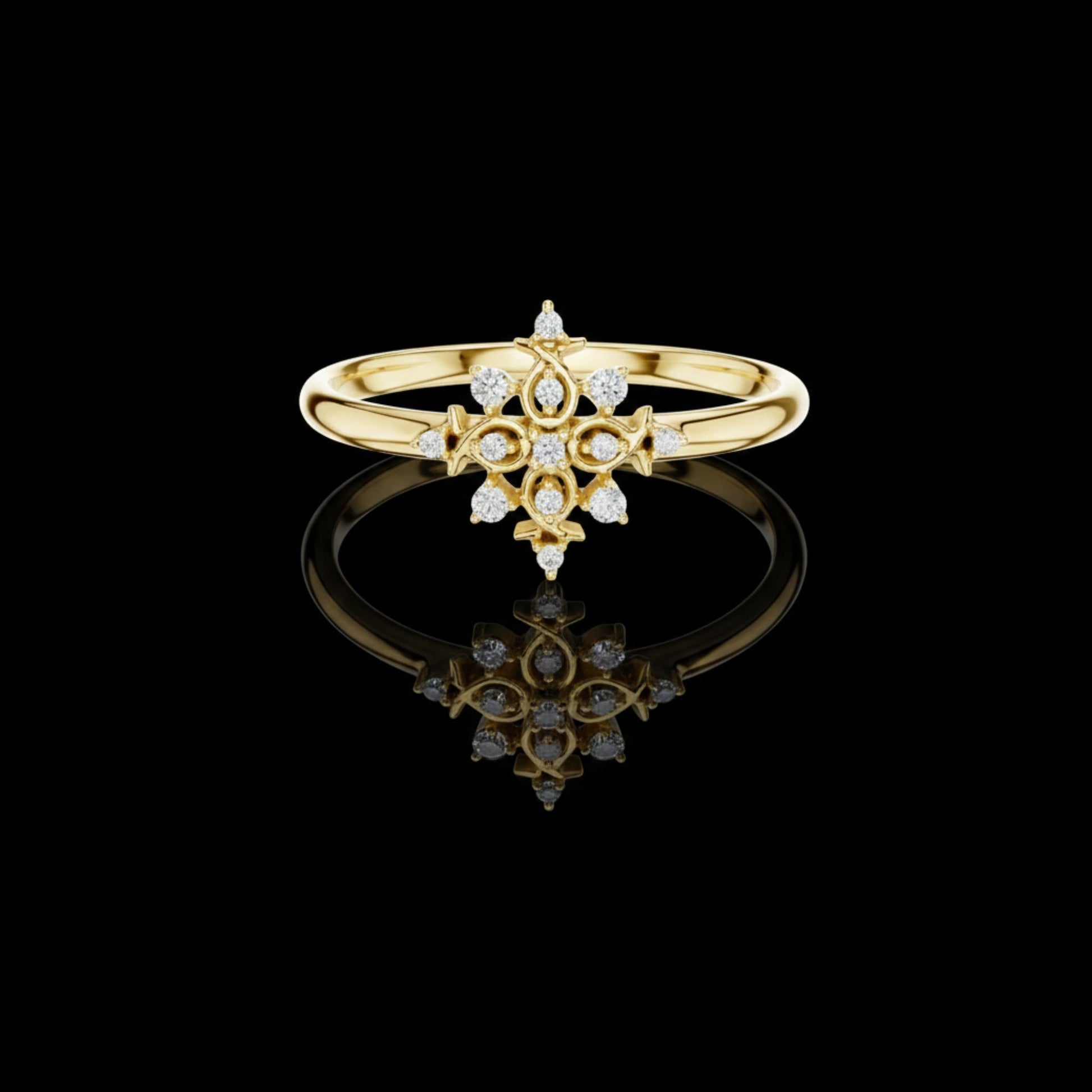 This elegant masterpiece features a beautifully detailed star-inspired design adorned with sparkling brilliant diamonds, creating a look of pure royalty, luxury, and timeless elegance. The intricate gold framework enhances its radiant charm, making it a perfect choice for those who appreciate premium craftsmanship and sophisticated beauty. Ideal for special occasions or elevating everyday style with a touch of regal sparkle.