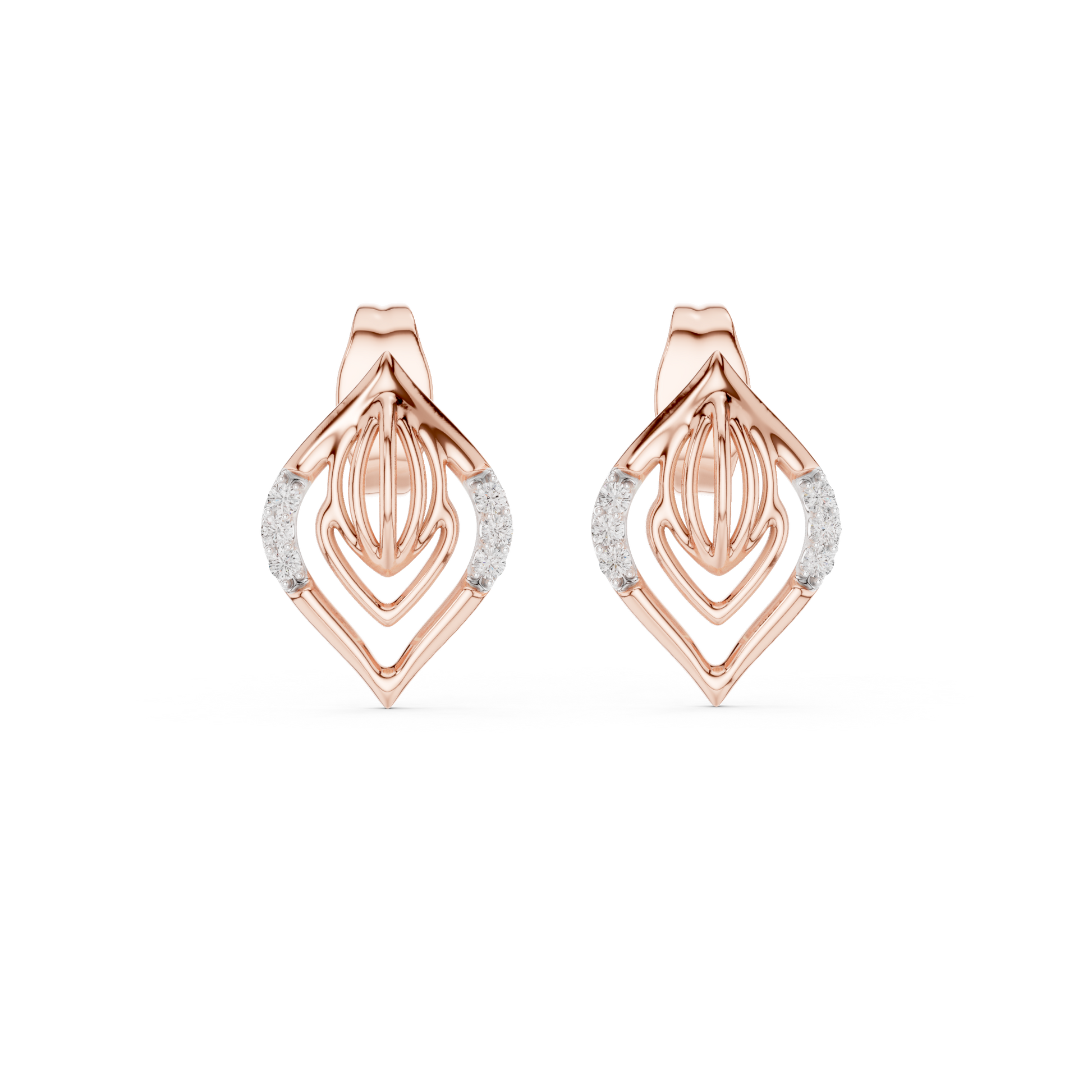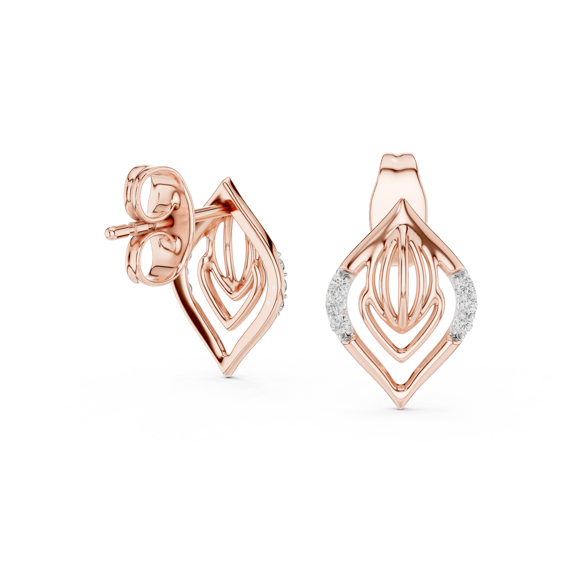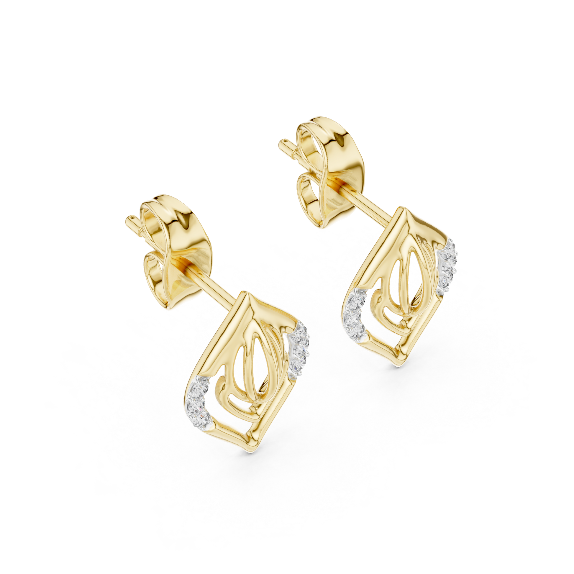 The Modern Apex Gold Stud Earrings embody modern elegance through bold geometry and refined craftsmanship. Designed with a striking open-frame silhouette, these studs feature a sculpted inner round-diamond motif that adds dimension and architectural balance. Subtle diamond accents along the curved sides introduce gentle brilliance without overpowering the design. The polished gold structure creates a lightweight yet statement-worthy piece, perfect for those who favor contemporary luxury with artistic depth. Ideal for everyday sophistication or elevated minimal styling.