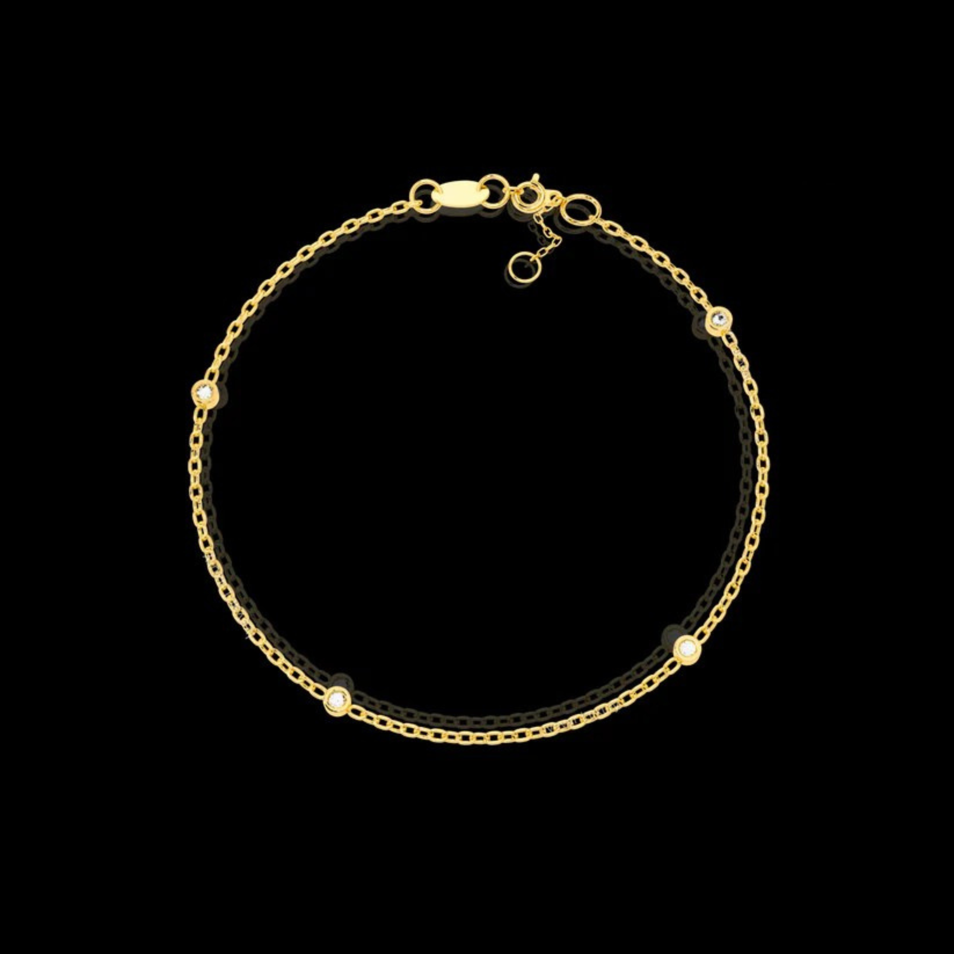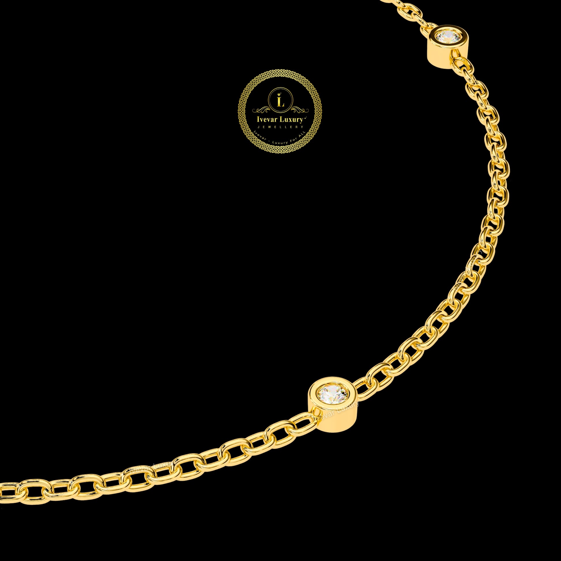 Elevate your everyday elegance with this exquisite Diamond Station Bracelet, designed with a fine gold chain adorned by evenly spaced, round-brilliant-cut diamonds. Each diamond sits delicately along the slender strand, creating a soft, continuous sparkle that feels effortlessly luxurious. Lightweight, refined, and timeless, this bracelet is perfect for daily wear, layering with other pieces, or adding a subtle touch of radiance to any occasion. A modern classic crafted for those who appreciate understated sophistication.