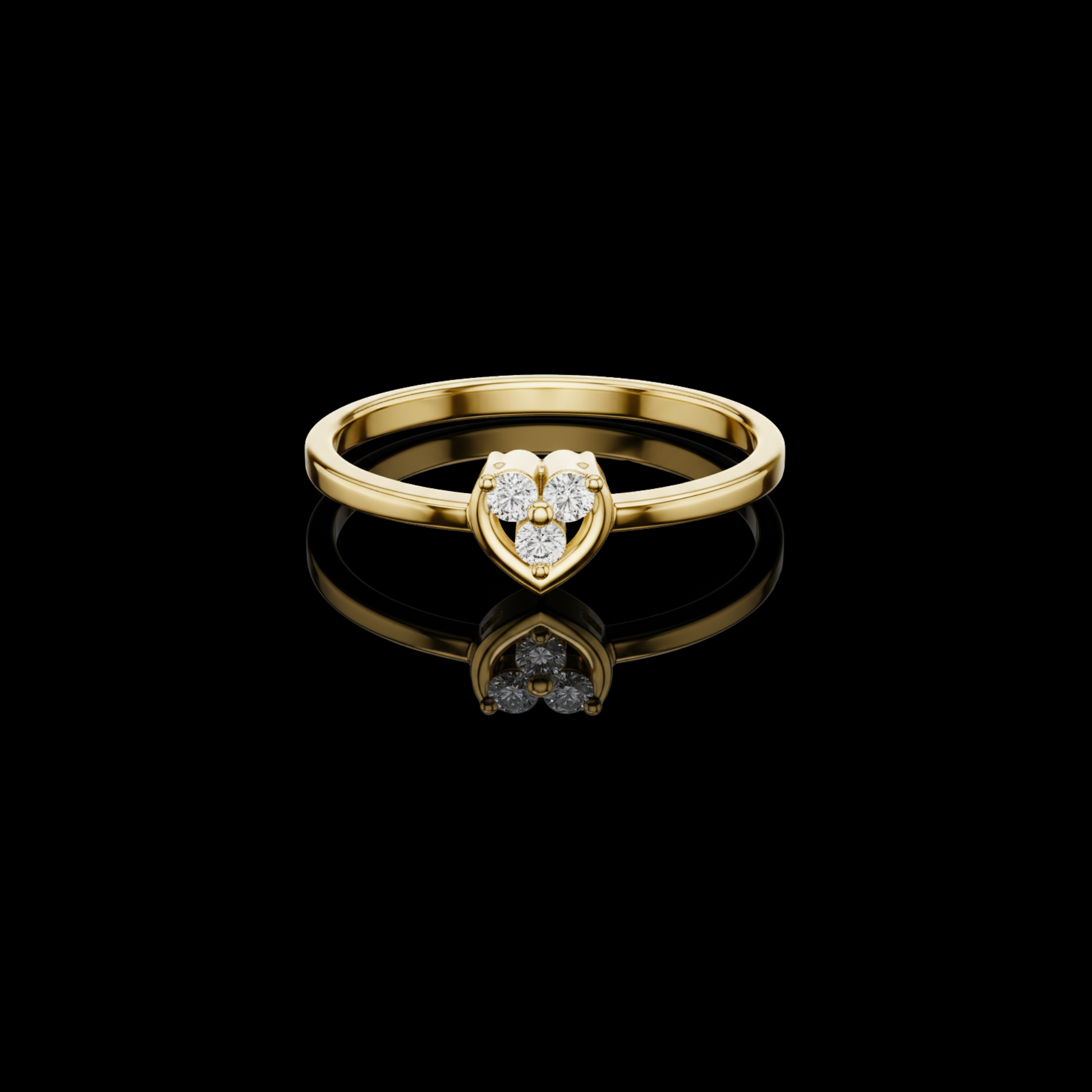 This refined ring showcases a soft heart silhouette beautifully sculpted in lustrous, embracing three brilliant diamonds that symbolize love, unity, and warmth. The sleek, minimal band offers a modern balance to the sentimental centerpiece, making it perfect for everyday wear or heartfelt gifting. Designed for those who appreciate subtle romance and timeless craftsmanship, this ring is a graceful expression of enduring affection and elegant simplicity.