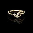 This ring showcases a sleek, flowing silhouette inspired by a delicate leaf in motion. Its slender gold band curves gracefully around a sparkling Round of diamonds, creating a design that feels airy, refined, and beautifully modern. Perfect for those who adore subtle luxury, artistic details, and timeless feminine elegance.