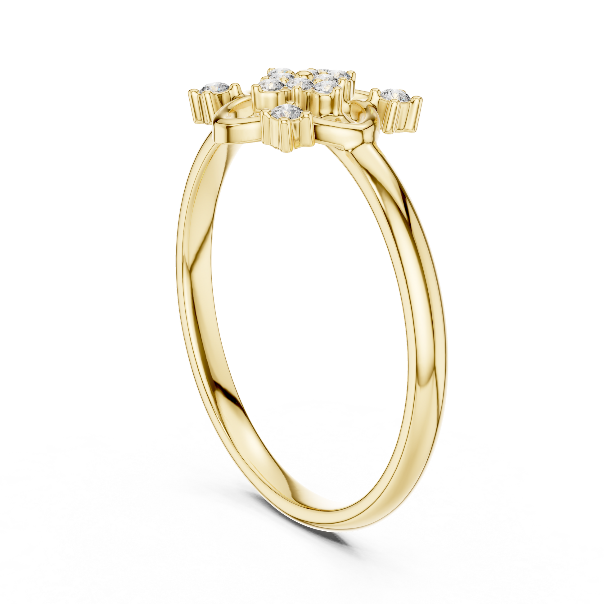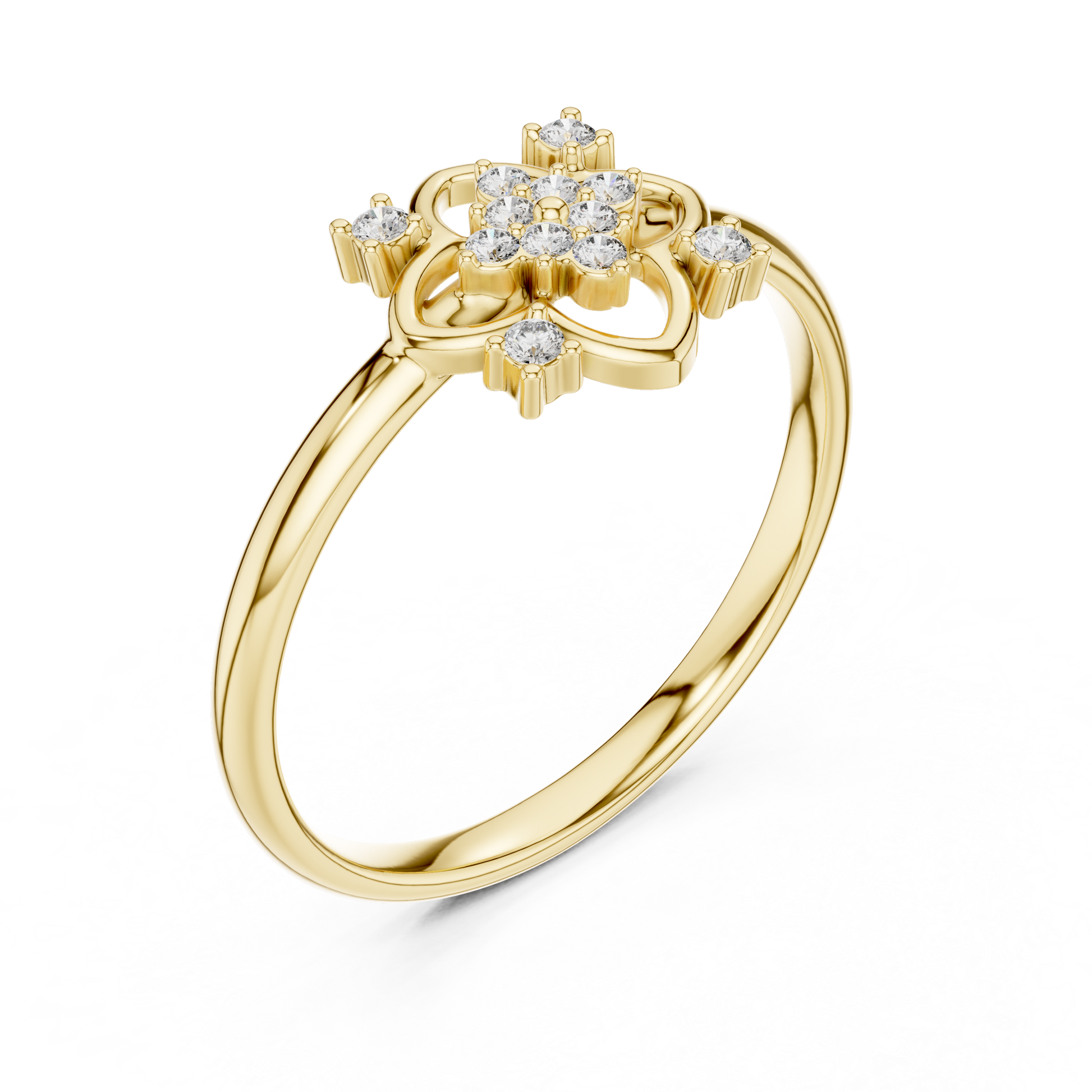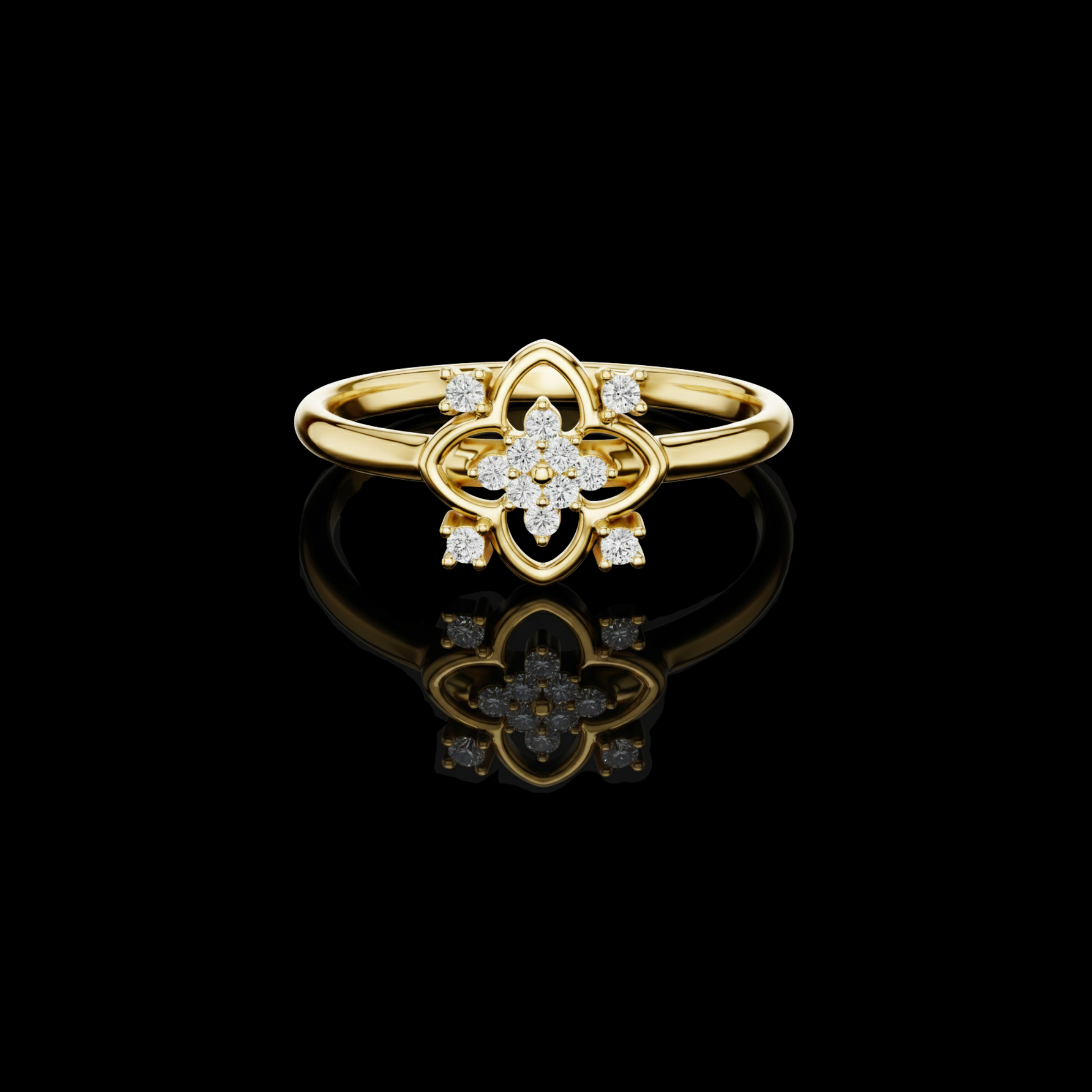 This captivating floral diamond ring showcases a beautifully sculpted petal-inspired centerpiece, highlighted by a radiant cluster of round-cut diamonds. Each diamond is expertly set to enhance brilliance, while additional diamonds accent the outer petals for added sparkle and dimension. The sleek, polished band completes the elegant silhouette, making this piece a perfect expression of luxury, romance, and refined craftsmanship. Ideal for everyday elegance or special occasions, this ring exudes grace, sophistication, and timeless beauty.