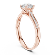 Celebrate unforgettable moments with this stunning engagement ring, crafted in radiant. At its heart lies a breathtaking round-cut center diamond, secured by elegant four-prong settings that highlight its brilliance and fire. The band is adorned with pavé-set diamonds, adding a continuous shimmer that enhances the ring’s timeless beauty.