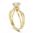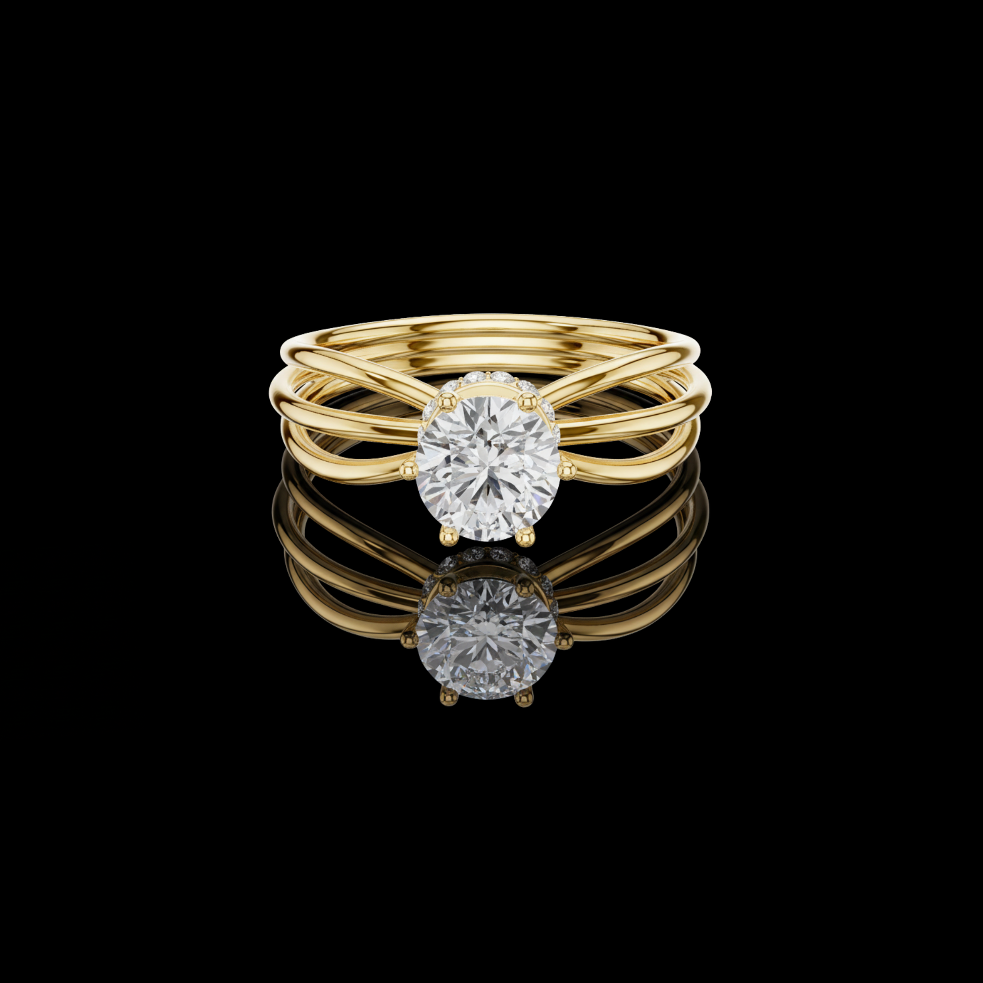 This exquisite ring showcases a Brilliant Round Solitaire set at the center, radiating exceptional sparkle. The stone is secured by a refined four-prong setting, accented with subtle micro diamonds at the base for an added touch of shimmer. Three sleek, bands gracefully merge into one, creating a modern yet timeless silhouette. Designed for those who appreciate both simplicity and sophistication, this piece offers a perfect blend of minimalist elegance and luxurious craftsmanship—an eye-catching statement for any occasion.