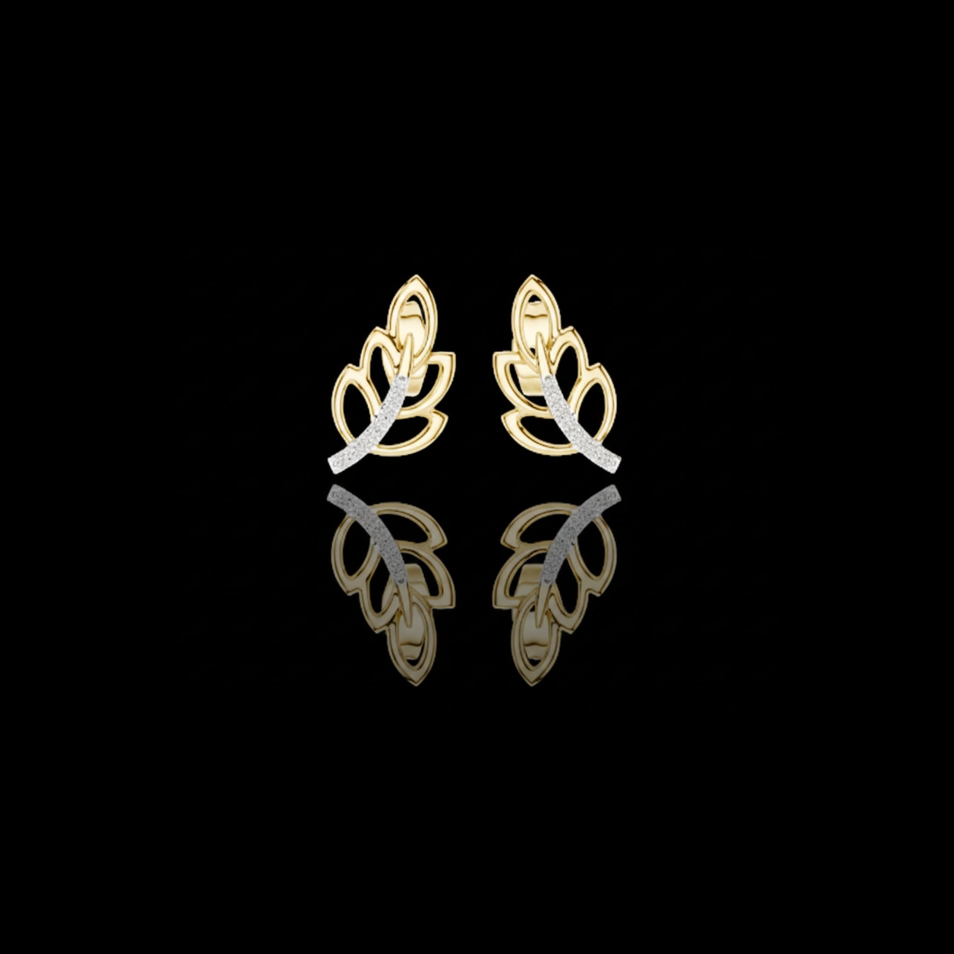 These elegant stud earrings feature a graceful leaf motif crafted in polished gold, highlighted by a shimmering round diamond-accented curve. The openwork design adds lightness and depth, creating a refined, nature-inspired look that sparkles beautifully with every movement. Perfect for everyday elegance or special occasions, these earrings blend modern artistry with timeless charm.