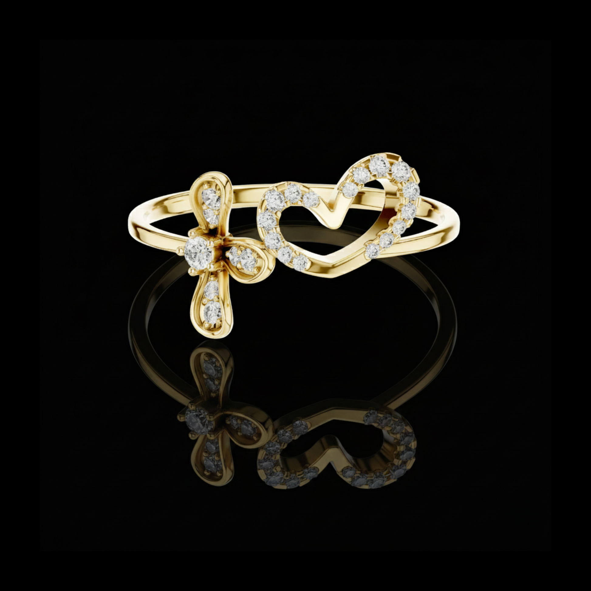 Celebrate romance and artistry with this Ivevar Luxury Heart & Floral Diamond Ring, adorned with sparkling round diamonds. Its unique open-band design, featuring a diamond-studded heart paired with a delicate floral motif, creates a perfect blend of charm and elegance. This piece is ideal for those who love lightweight, meaningful, and stylish fine jewelry, making it a beautiful choice for daily wear or gifting.