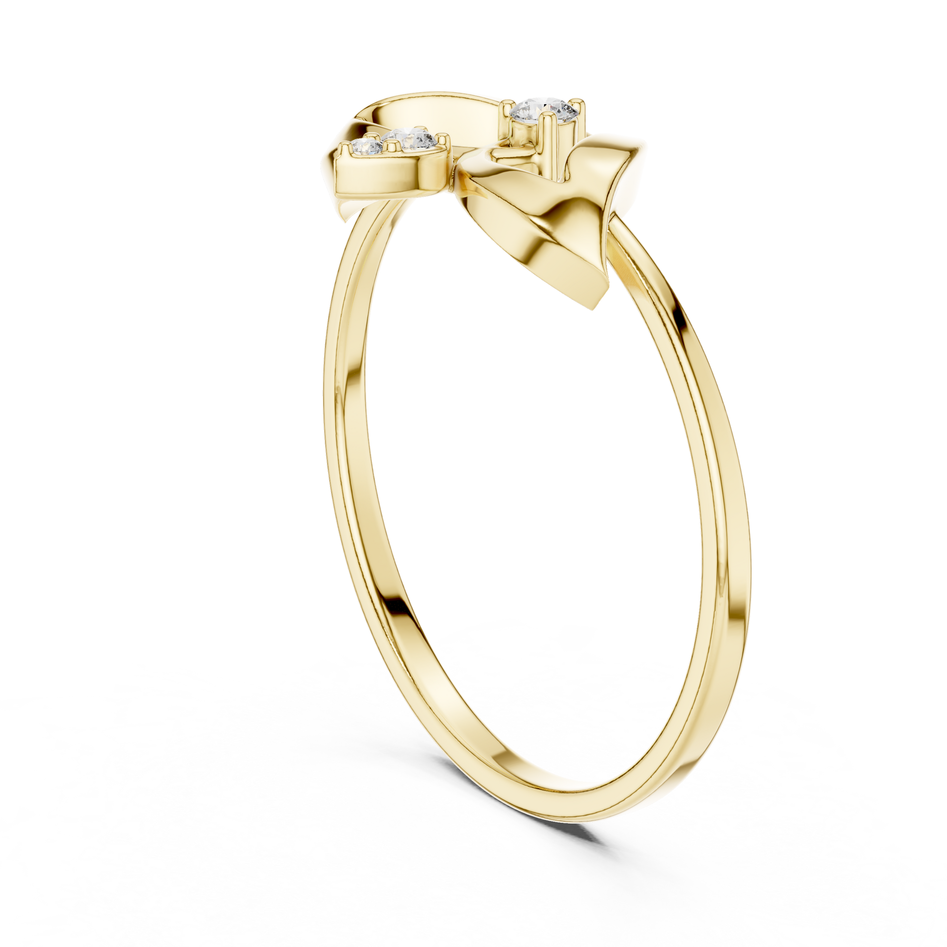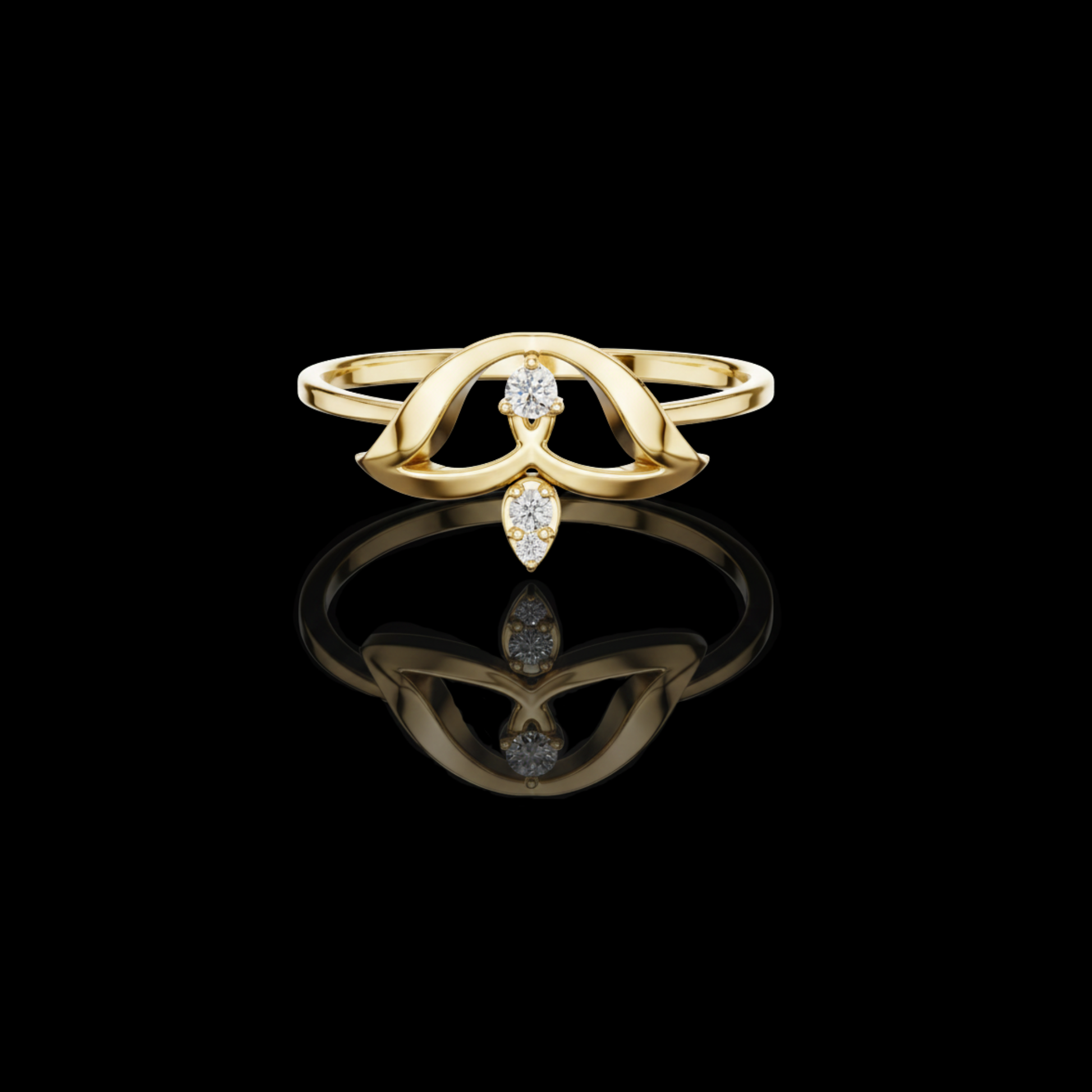 The Celestial Bloom Ring captures the essence of ethereal beauty through its delicately sculpted floating arc motif, shaped like petals unfolding in light. Two shimmering Round-cut diamonds—one suspended at the center and another gently dropped below—create a captivating vertical balance that draws the eye. Crafted in lustrous, this piece blends organic curves with modern minimalism, offering a look that is both rare and radiantly unique. A perfect choice for those who seek jewelry that feels artistic, symbolic, and truly one of a kind.