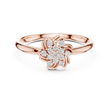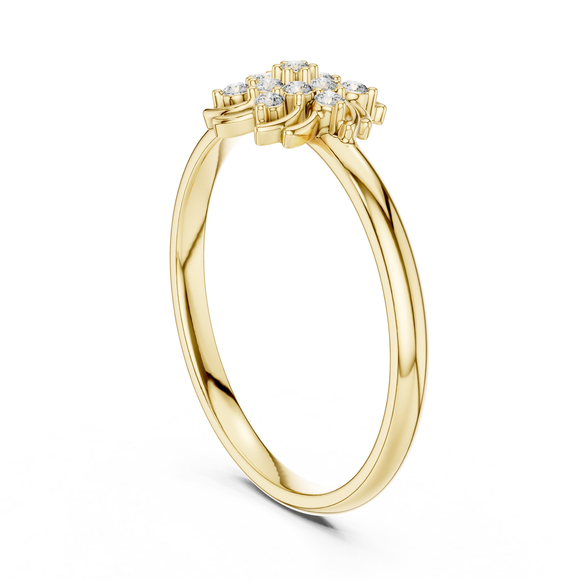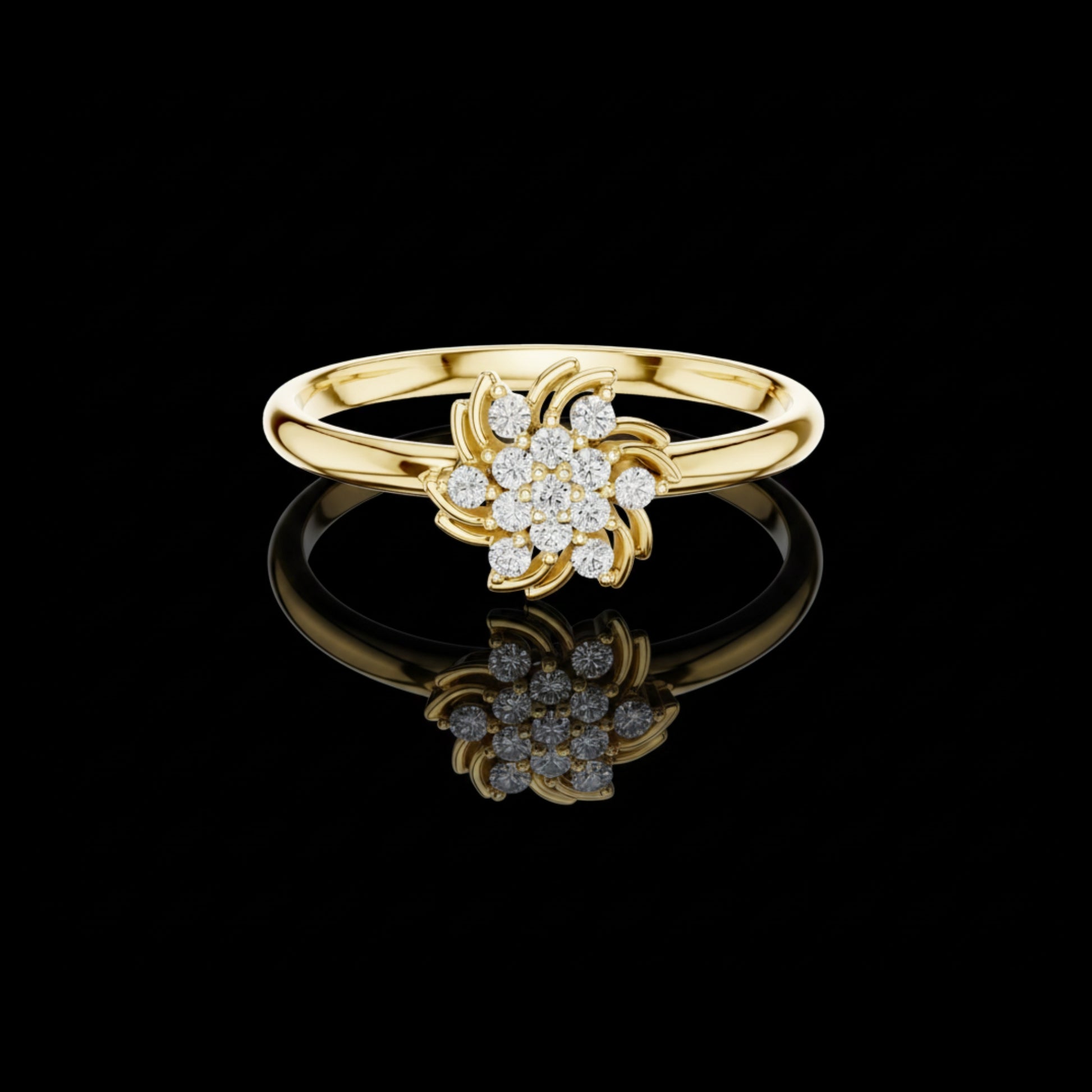 This eye-catching diamond ring features a swirling floral cluster design crafted in radiant gold. The petals curve gracefully around a shimmering center of round diamonds, creating a dynamic, blooming effect. Elegant, stylish, and full of sparkle, this ring is perfect for everyday wear or as a meaningful gift for someone special. Perfect for everyday wear or as a special gift, this piece blends artistic design with timeless sparkle.