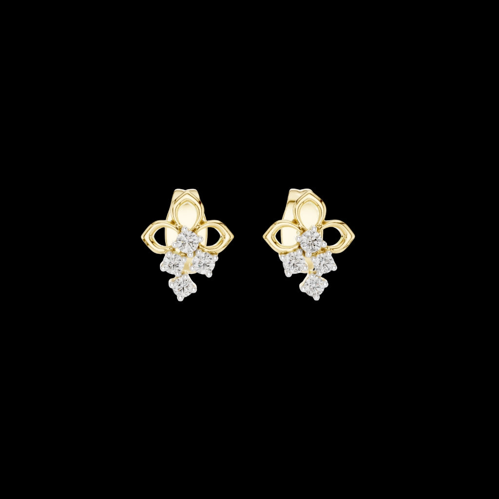 The Elowen Clover Gold Stud Earrings capture delicate charm through a refined floral silhouette. Inspired by a soft clover motif, the open gold petals frame a graceful cluster of sparkling round diamonds that cascade gently below, adding movement and brilliance. The balanced combination of airy goldwork and subtle drop detailing creates an elegant yet playful look. Perfect for everyday wear or meaningful gifting, these studs bring a touch of nature-inspired luxury to any style.