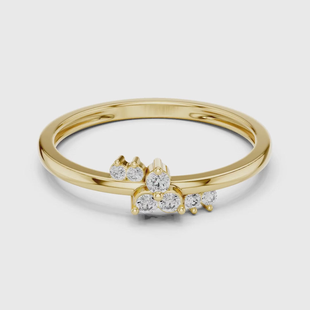 Designed with a contemporary spirit, this ring showcases a sleek band adorned with a carefully sculpted cluster of brilliant diamonds. The graduated arrangement creates depth and soft movement, offering a fresh take on everyday luxury. Elegant yet understated, this piece is ideal for those who appreciate modern design, fine craftsmanship, and timeless versatility. A perfect choice for daily wear or meaningful gifting, it reflects quiet confidence and enduring beauty.
