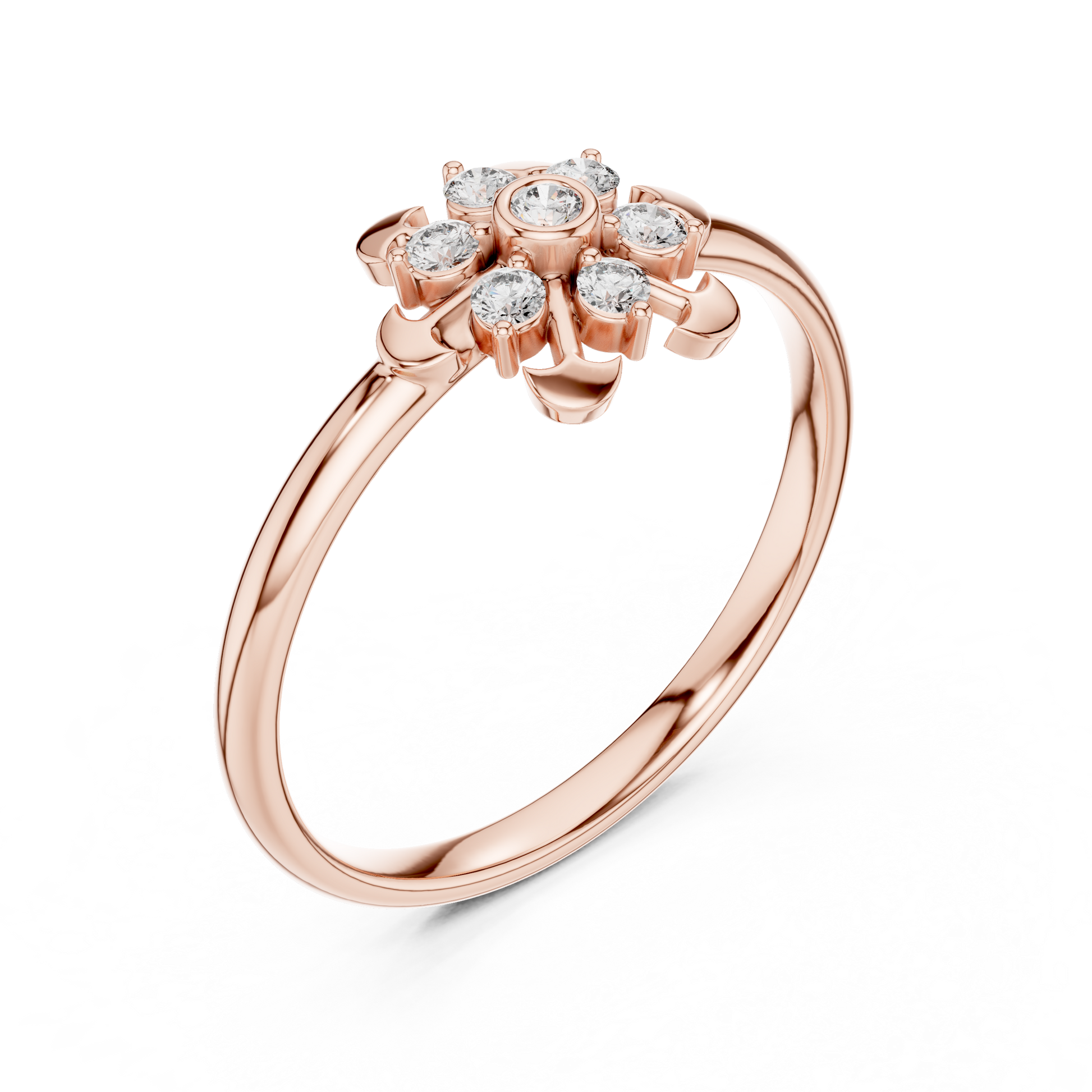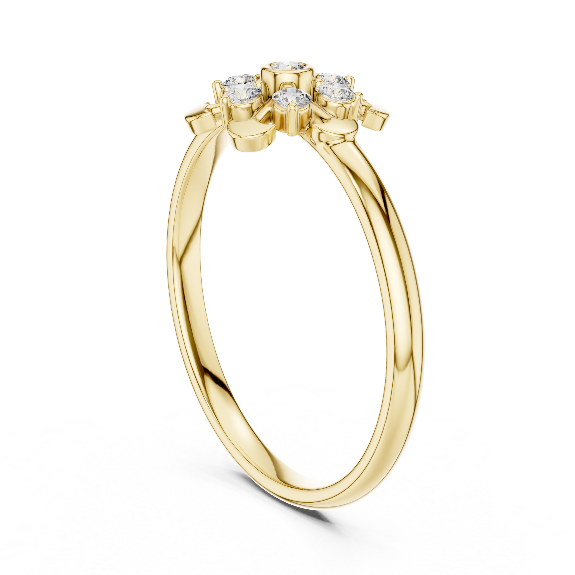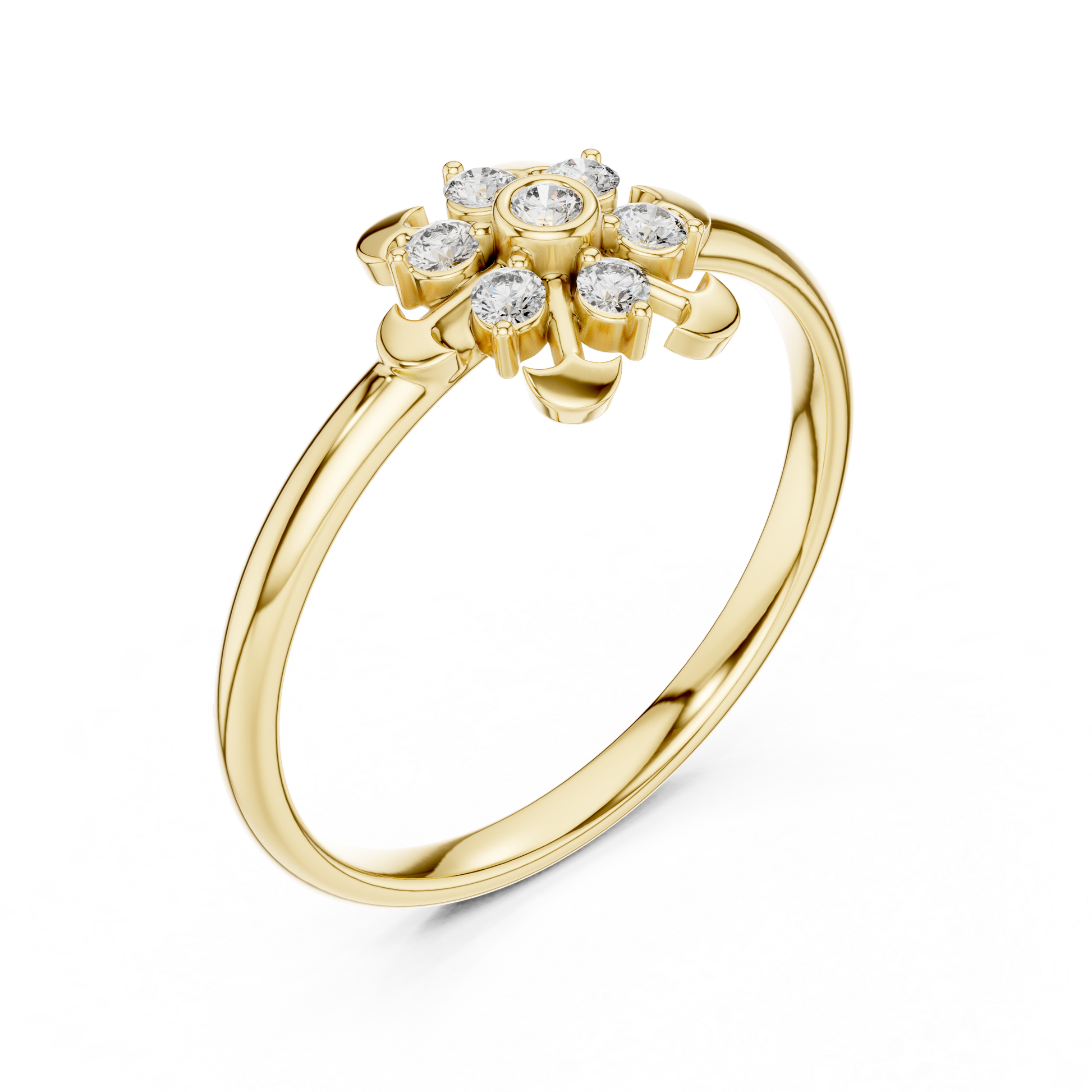 This exquisite piece showcases a handcrafted band adorned with a mesmerizing floral diamond cluster. At its center rests a brilliant-cut diamond, encircled by eight shimmering accents that create a luminous flower-like motif. The graceful, polished setting enhances the ring’s elegance, making it perfect for special occasions or everyday sophistication. Designed for those who appreciate refined craftsmanship, timeless beauty, and a touch of romantic charm, this ring effortlessly becomes the highlight of any jewelry collection.