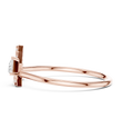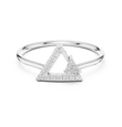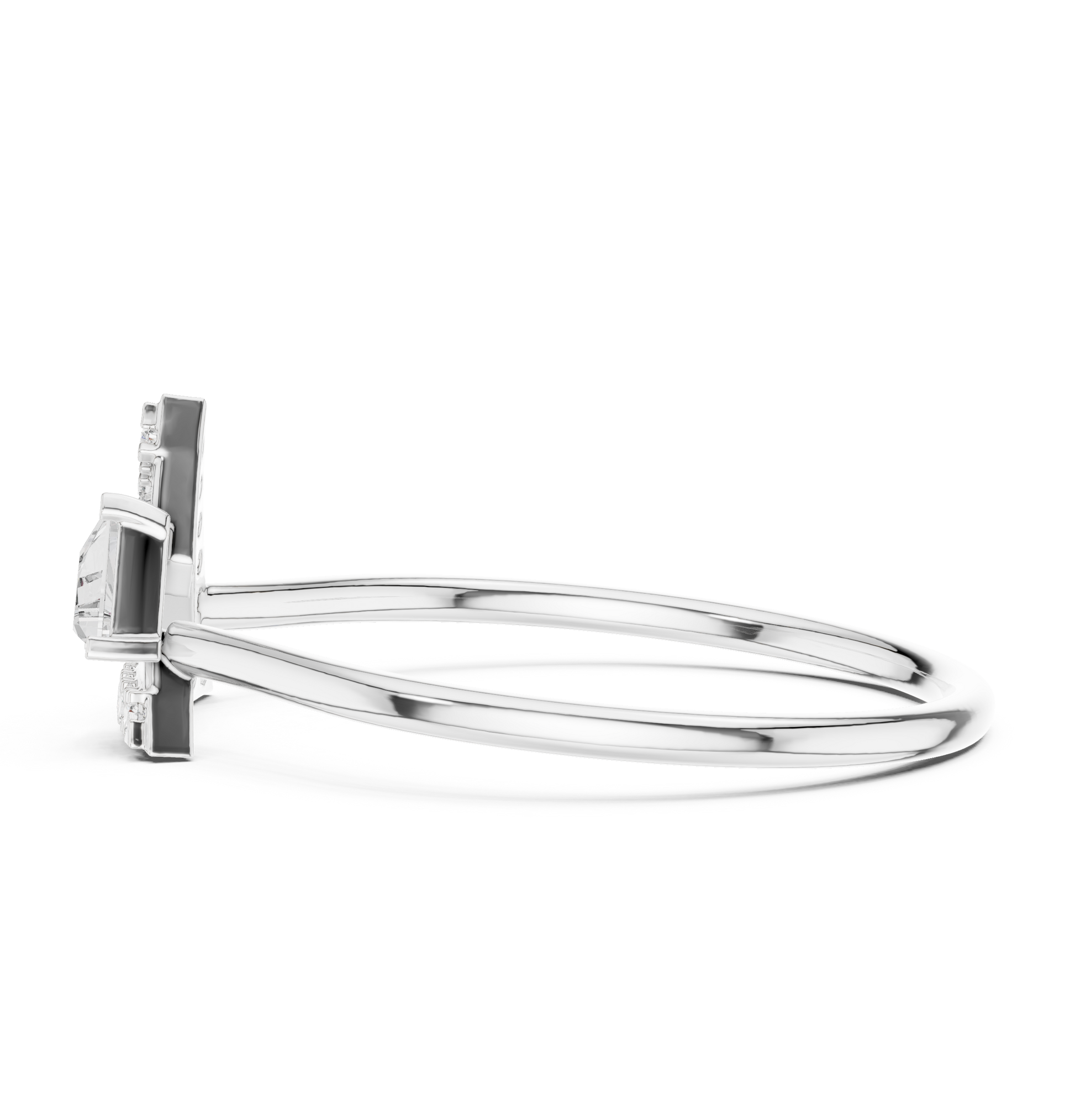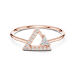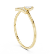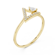 This contemporary gold ring showcases a bold open triangle silhouette accented with pavé-set round diamonds and a striking trillion-cut diamond detail. The sharp geometric lines create a modern architectural look, while the polished gold band adds balance and elegance. Designed for those who love clean shapes and statement minimalism, this ring is perfect for stacking, modern bridal styling, or everyday luxury with an artistic twist.