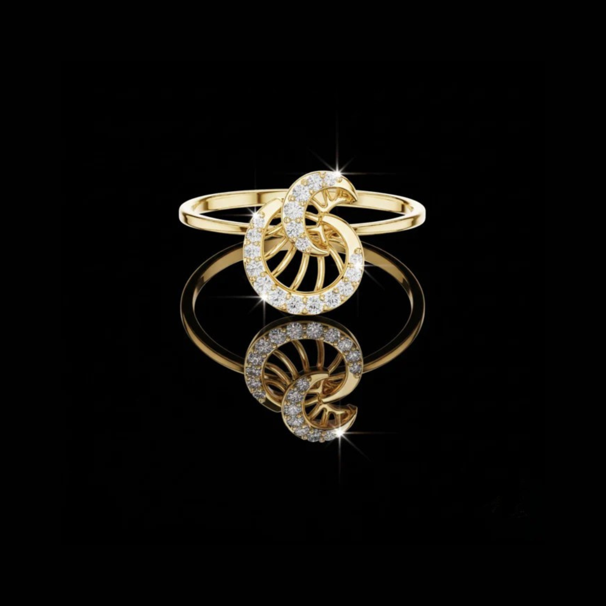 This captivating ring features a striking spiral motif, gracefully crafted in luxurious and adorned with a halo of brilliant-Round cut diamonds. The design evokes the natural elegance of a nautilus shell, symbolizing infinity, growth, and timeless beauty. Its slender band highlights the intricate centerpiece, creating a piece that is both delicate and eye-catching. Perfect for those who appreciate artistic jewelry, this ring seamlessly blends modern sophistication with classic sparkle.