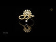 This ring features a fluid infinity-inspired band crafted in polished creating a sense of continuous motion and elegance. Rising above the center is a sunburst-style crest, formed by smooth gold rays and highlighted with a semi-arc of sparkling round diamonds. One end of the band extends gracefully outward, ending in a single brilliant-cut diamond, adding balance and a touch of refined brilliance.