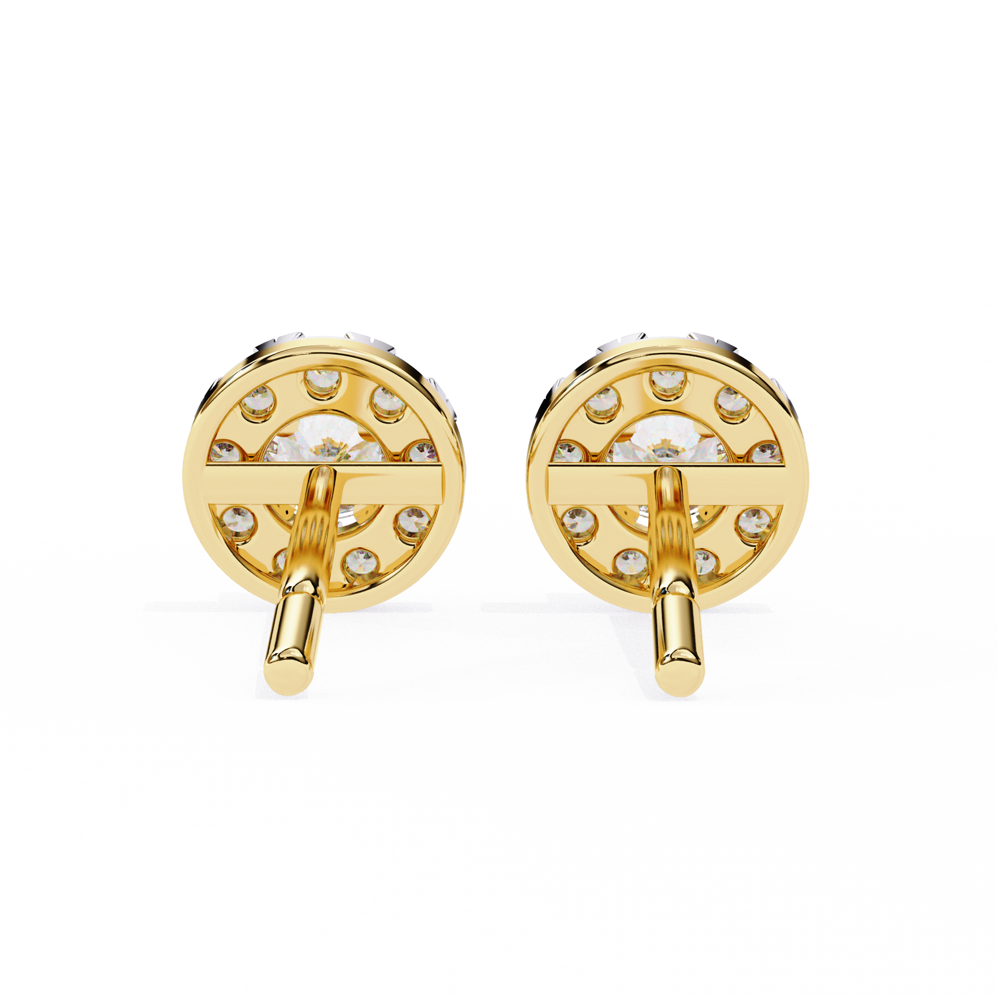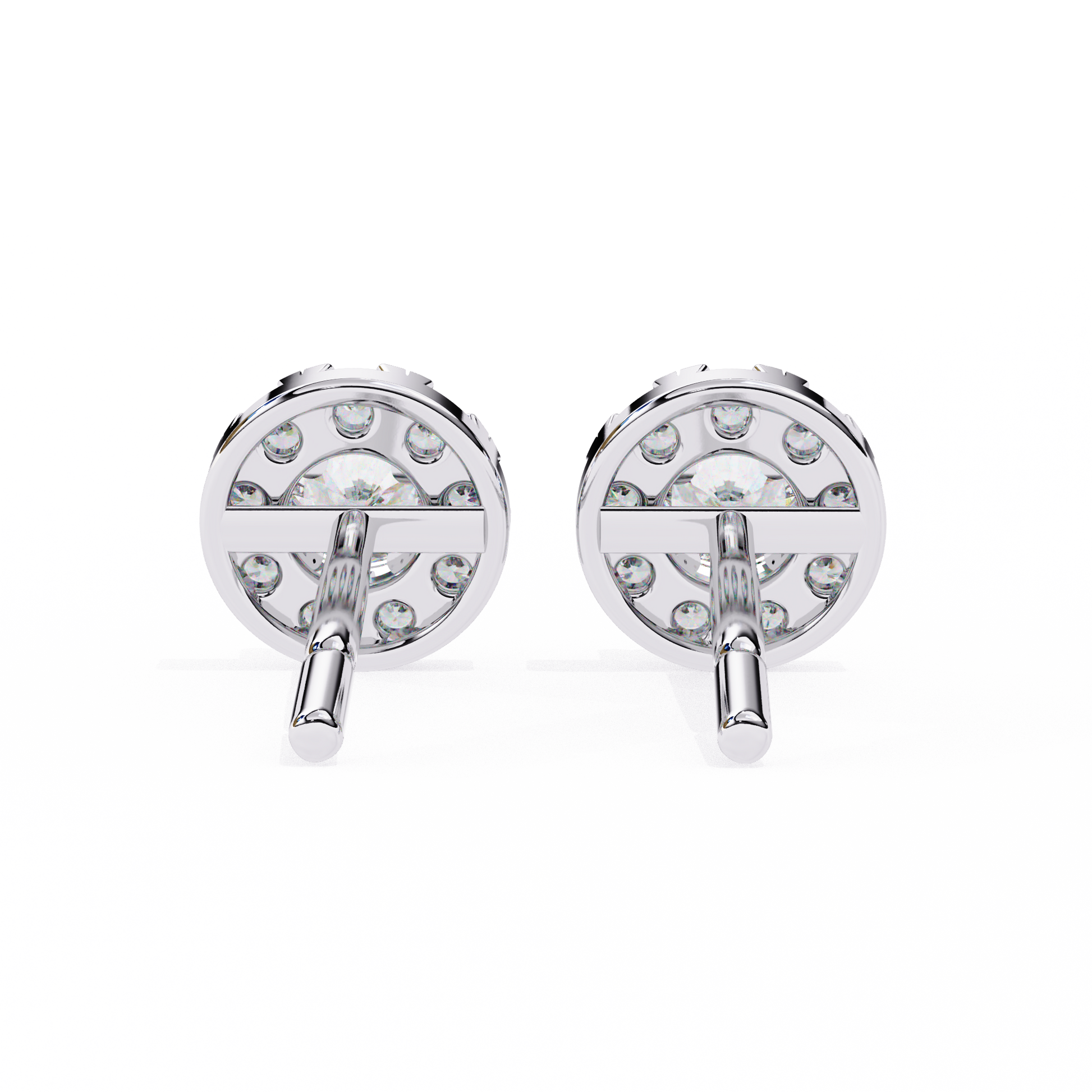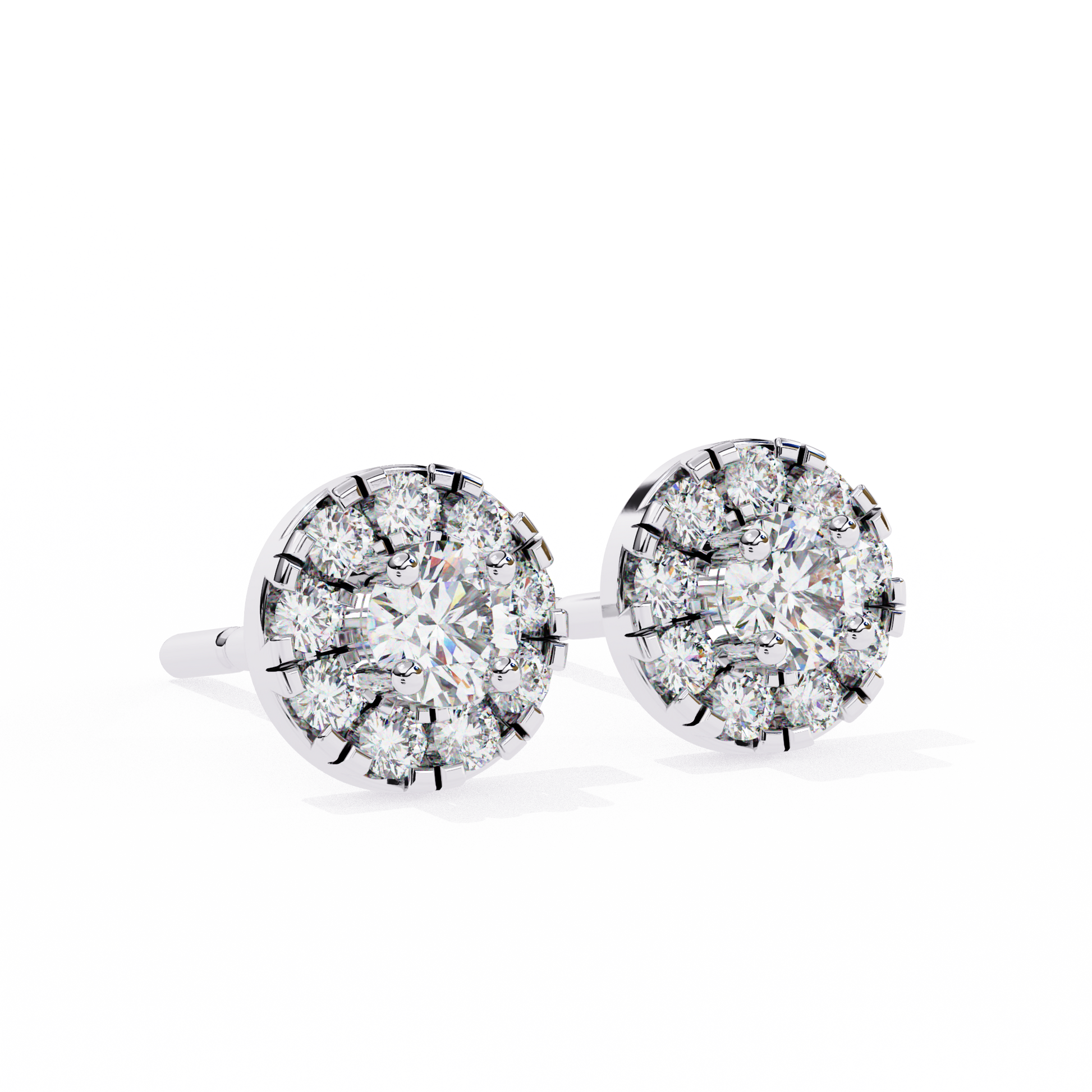 Illuminate your look with The Starlight Cluster Studs. These magnificent earrings feature a brilliant central round-cut diamond, dramatically encircled by a radiant halo of smaller, meticulously set diamonds. This multi-stone design maximizes sparkle and creates the illusion of a much larger single stone, offering exceptional value and presence. The diamonds are set in elegant, which enhances the icy brilliance and colorless fire of the stones.