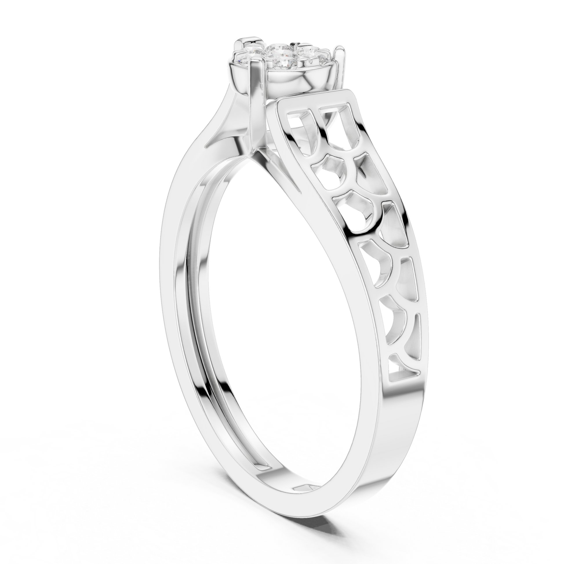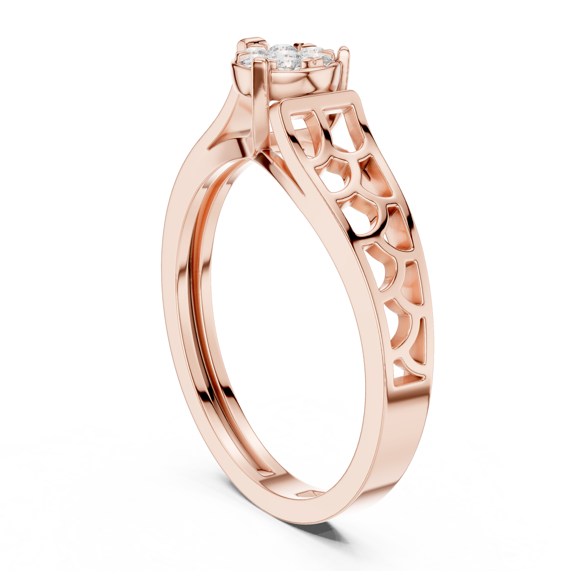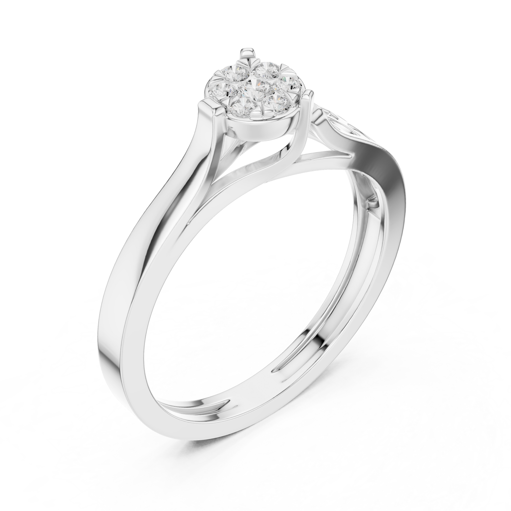Celebrate refined beauty with this exquisite diamond cluster ring, masterfully crafted in luxurious . The centerpiece features a flower-inspired arrangement of brilliant-Rouns cut diamonds, designed to capture and reflect light from every angle.The band showcases delicate openwork detailing, adding an artistic touch while ensuring comfort and durability.