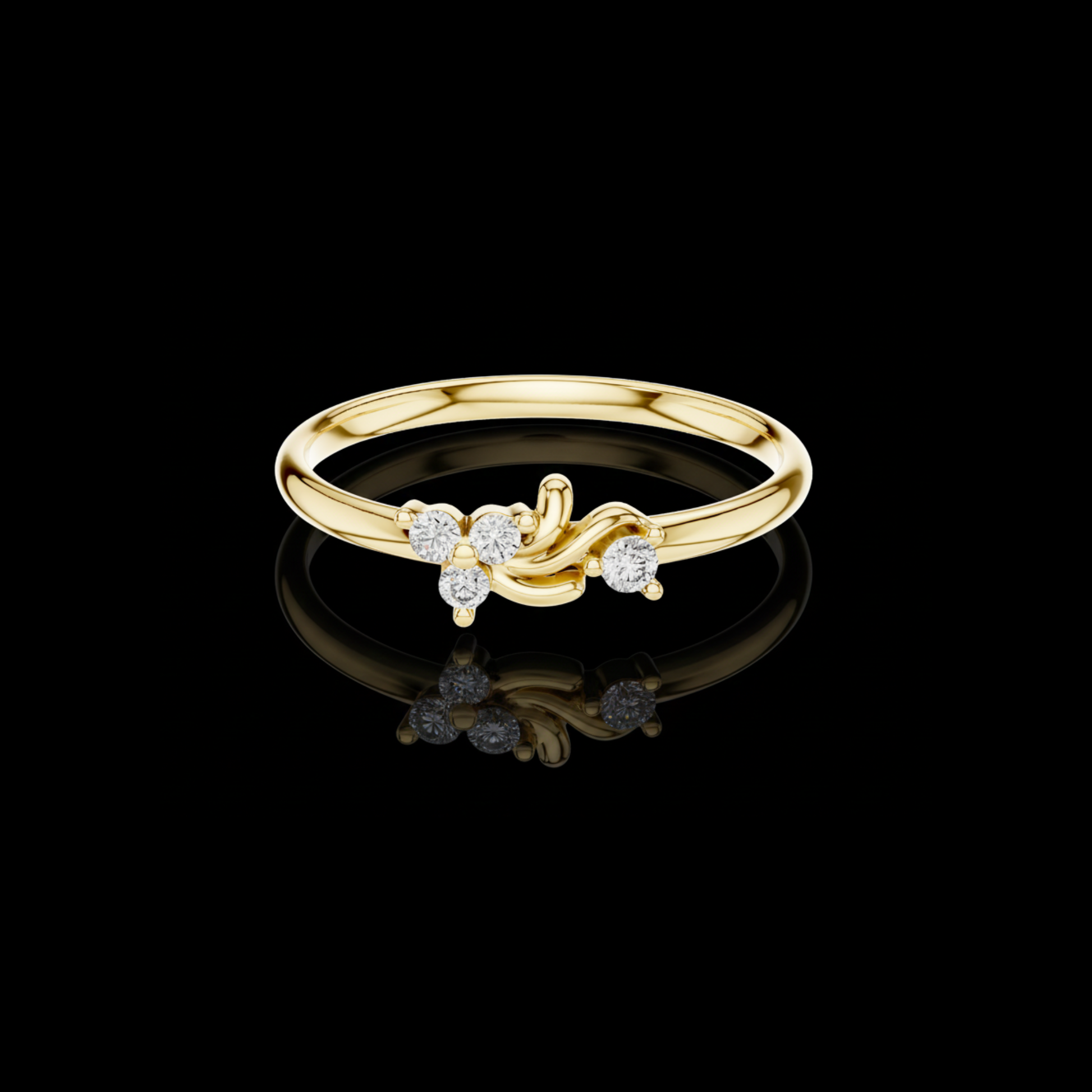 This exquisite ring features a sleek band adorned with a graceful vine-inspired design that curves gently across the finger. Nestled along the vine are brilliant round-cut diamonds, forming a subtle blooming cluster that adds refined sparkle. The combination of organic curves and radiant diamonds creates a look that is both delicate and luxuriously modern.