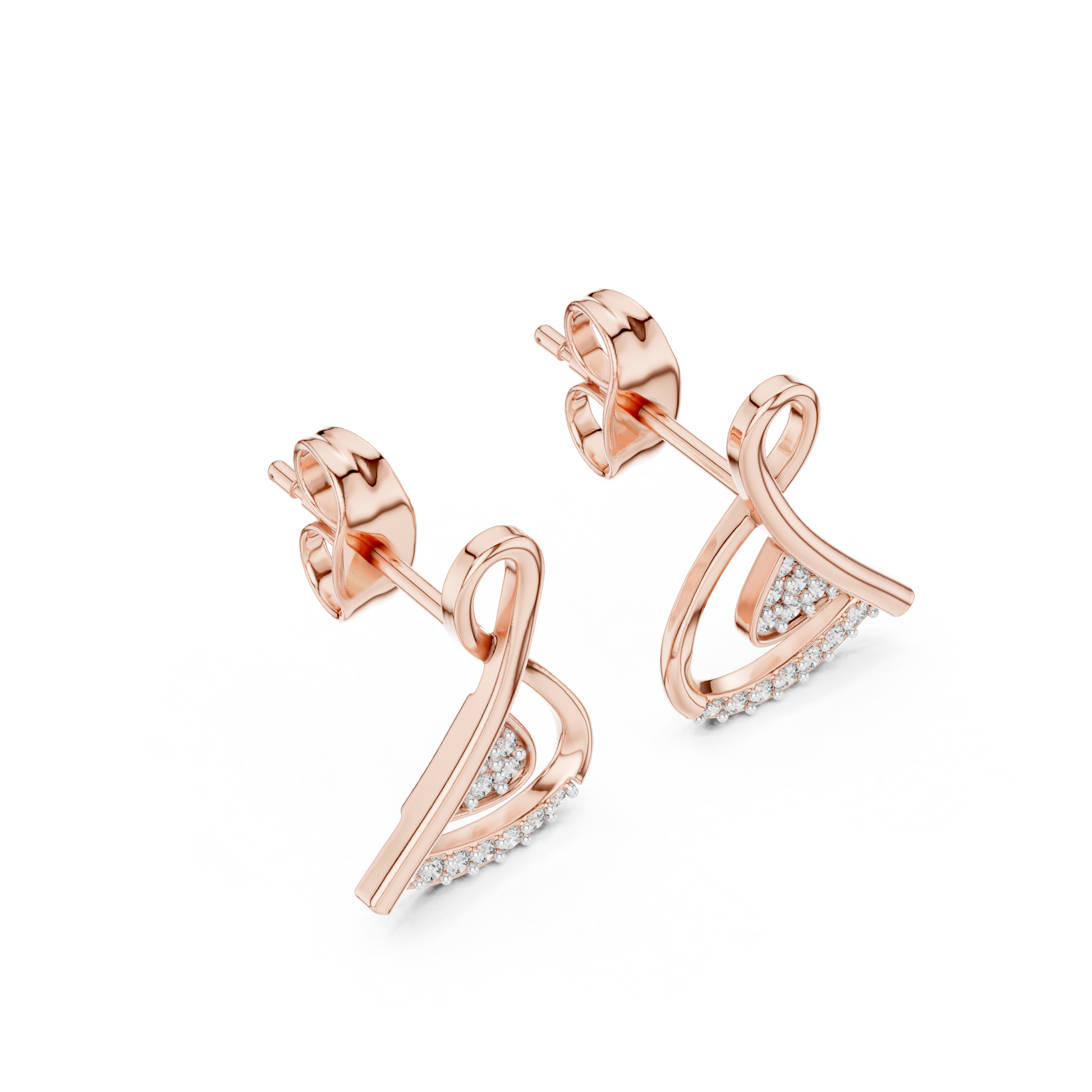 These modern infinity loop diamond stud earrings are crafted in polished gold with a fluid, open silhouette that symbolizes continuity and elegance. A softly curved pavé round diamond arc adds subtle sparkle, while the sculptural looped form creates depth and contemporary appeal. Designed for women who love refined minimalism with a luxurious touch, these studs transition effortlessly from everyday wear to elevated occasions. Their lightweight structure and artistic flow make them a timeless statement of modern sophistication.