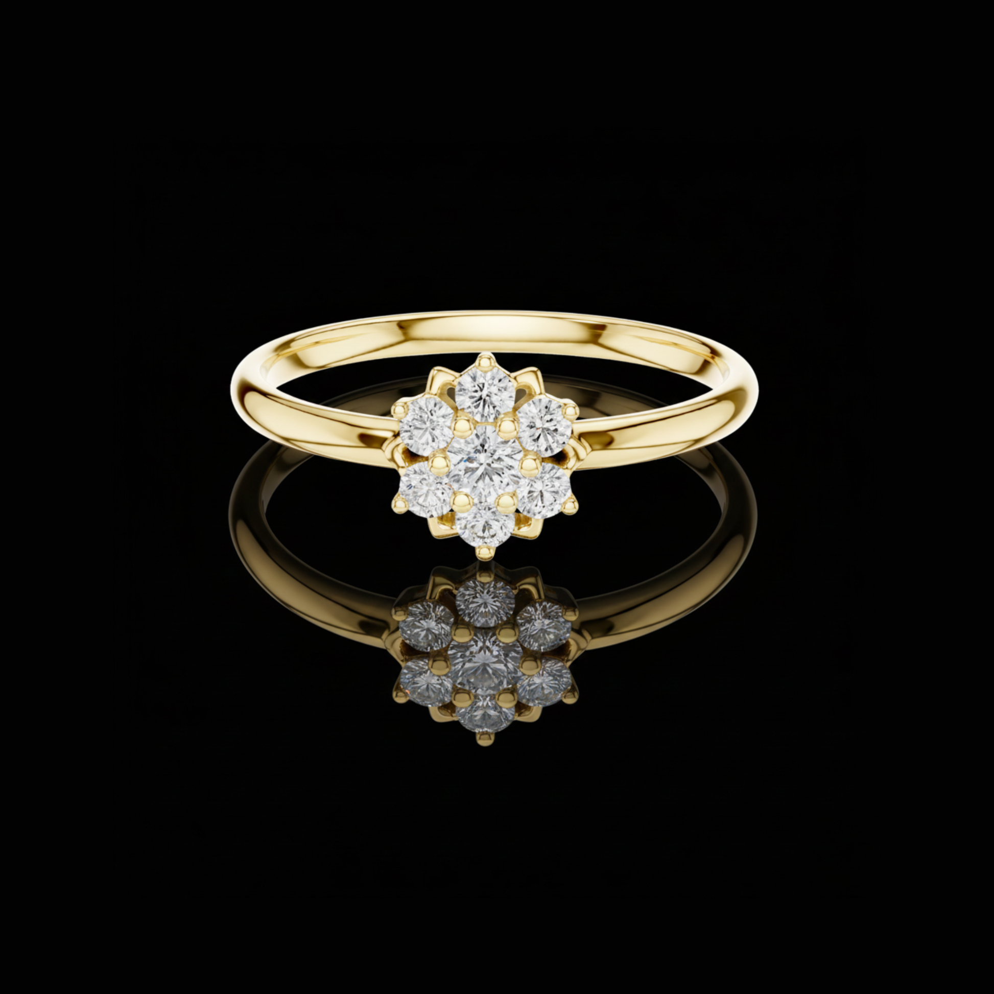 This exquisite floral diamond ring from Ivevar Luxury captures timeless elegance with its radiant cluster of sparkling stones set in polished gold. The delicate flower design symbolizes beauty, growth, and new beginnings, making it a meaningful piece for any special moment. Each diamond is arranged with precision to create a breathtaking bloom effect that enhances its brilliance. The sleek gold band adds a refined touch, offering both sophistication and everyday comfort. Perfect as a gift, promise ring, or keepsake, this piece embodies bold craftsmanship, bold detailing, and bold timeless charm.