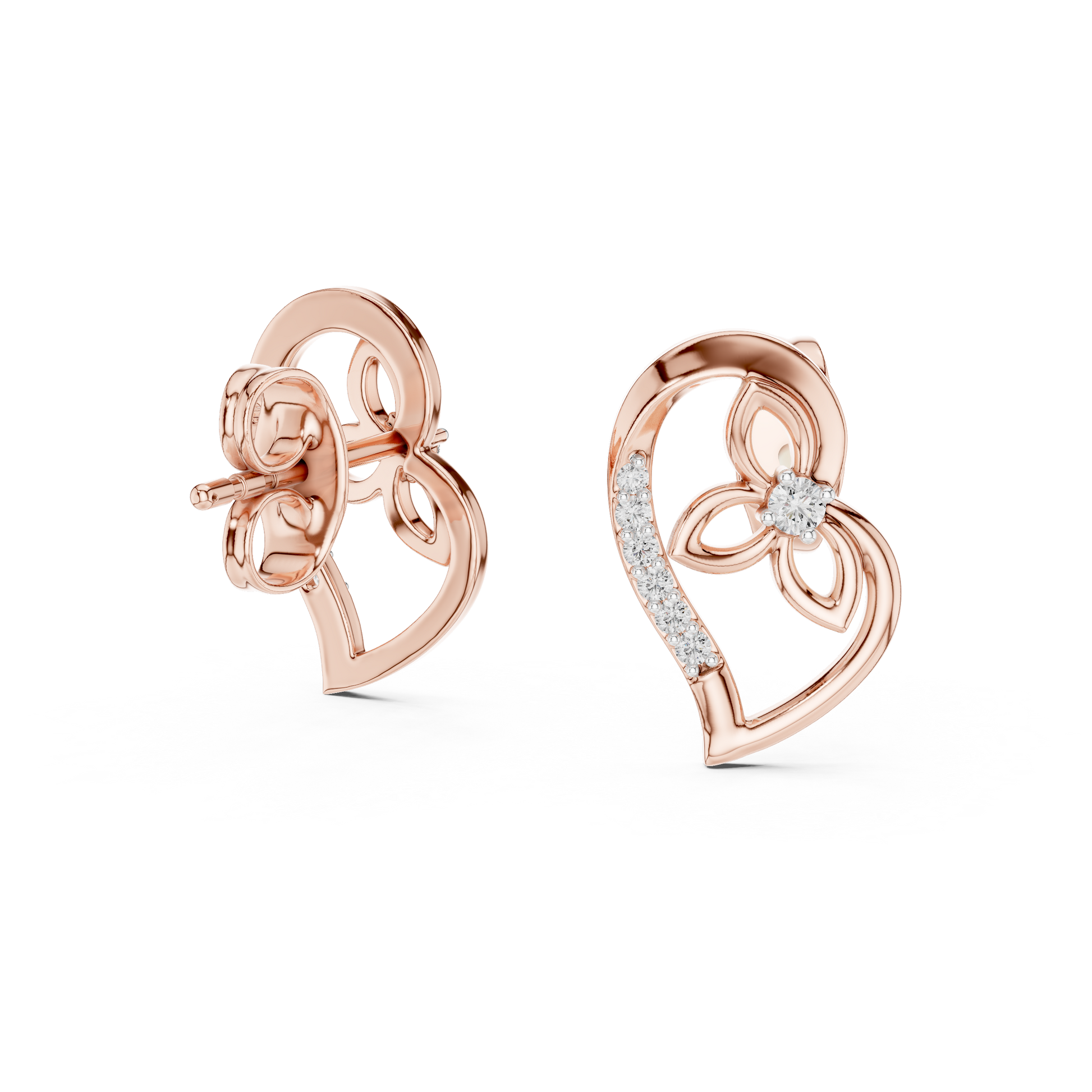Designed to celebrate timeless romance, these eternal heart diamond stud earrings blend soft curves with refined sparkle. The elegant open-heart silhouette is enhanced by a delicate floral motif, symbolizing love, harmony, and beauty.Accented with round brilliant cut diamonds, each piece radiates exceptional brilliance while maintaining a lightweight, comfortable feel. The finish setting adds warmth and sophistication, making these studs perfect for both everyday elegance and special moments.