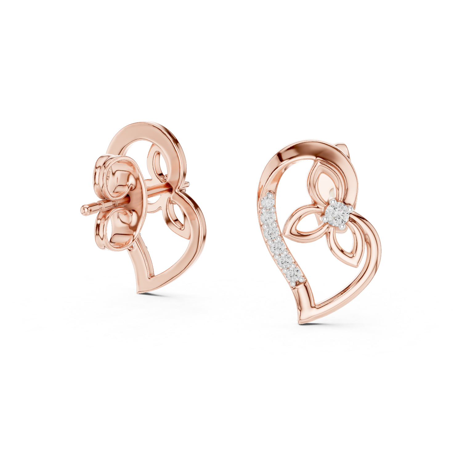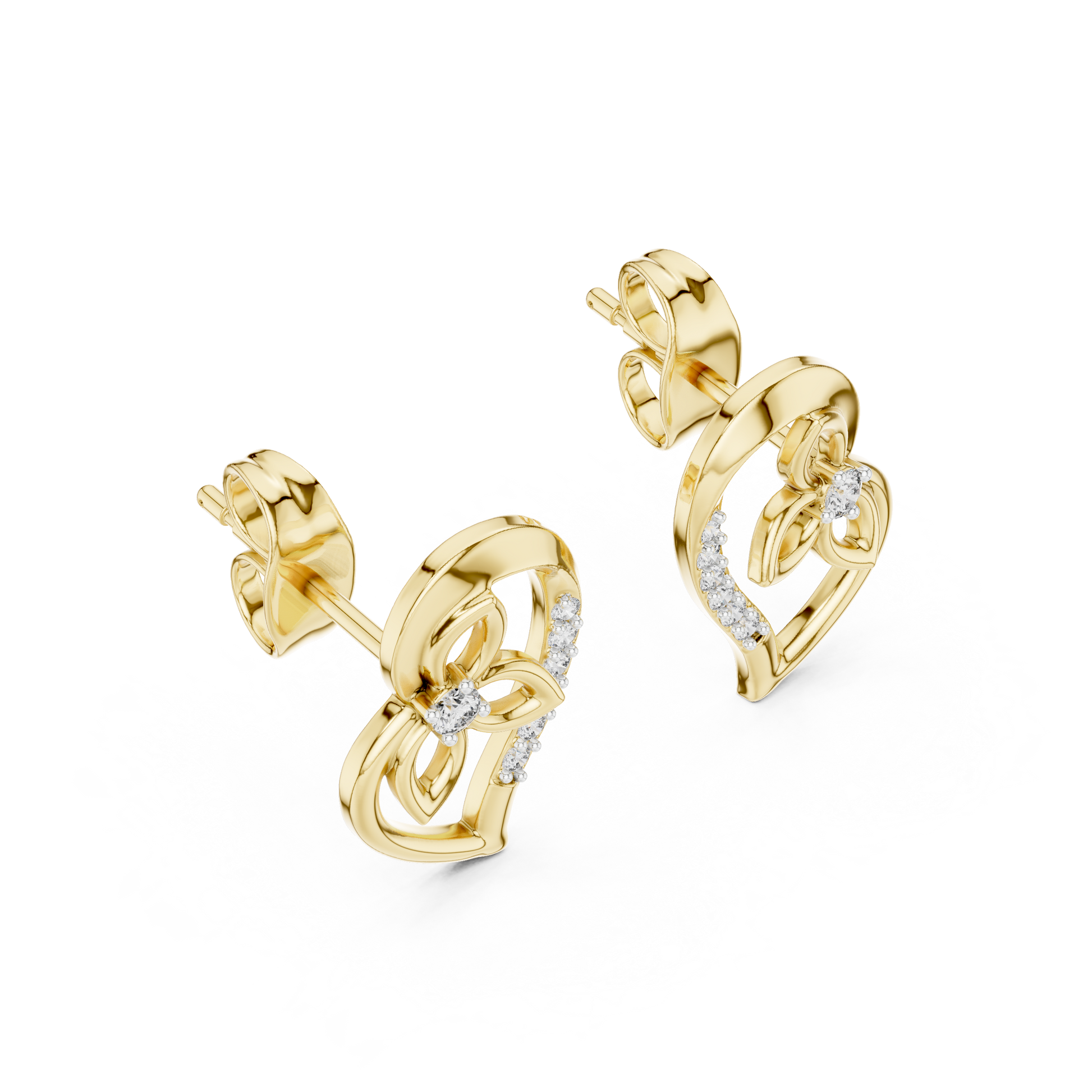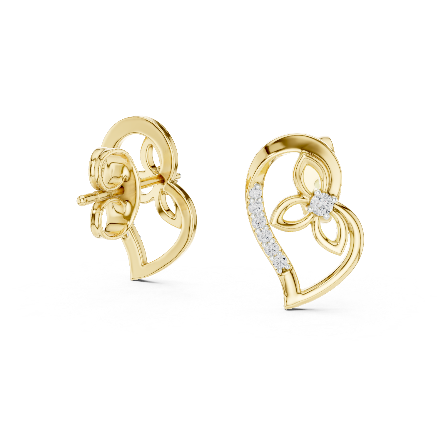 Designed to celebrate timeless romance, these eternal heart diamond stud earrings blend soft curves with refined sparkle. The elegant open-heart silhouette is enhanced by a delicate floral motif, symbolizing love, harmony, and beauty.Accented with round brilliant cut diamonds, each piece radiates exceptional brilliance while maintaining a lightweight, comfortable feel. The finish setting adds warmth and sophistication, making these studs perfect for both everyday elegance and special moments.