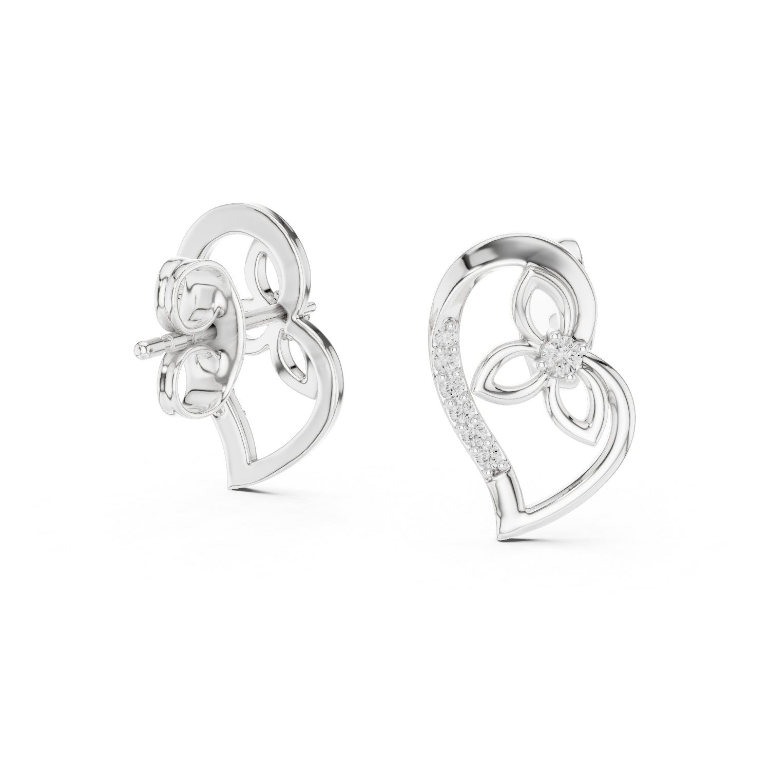 0.09 TCW Eternal Heart Floral Diamond Stud Earrings with Round Moissanite Diamonds