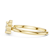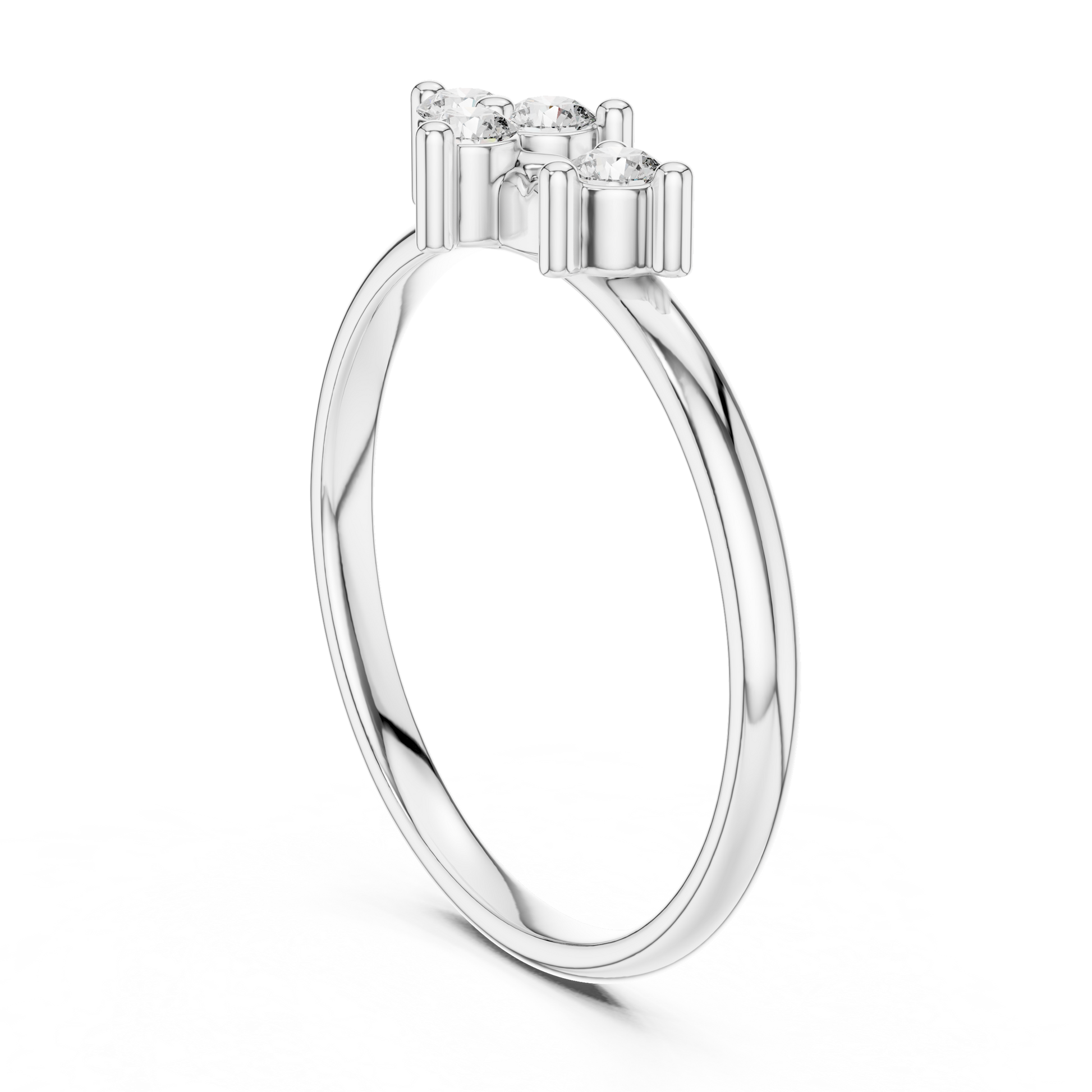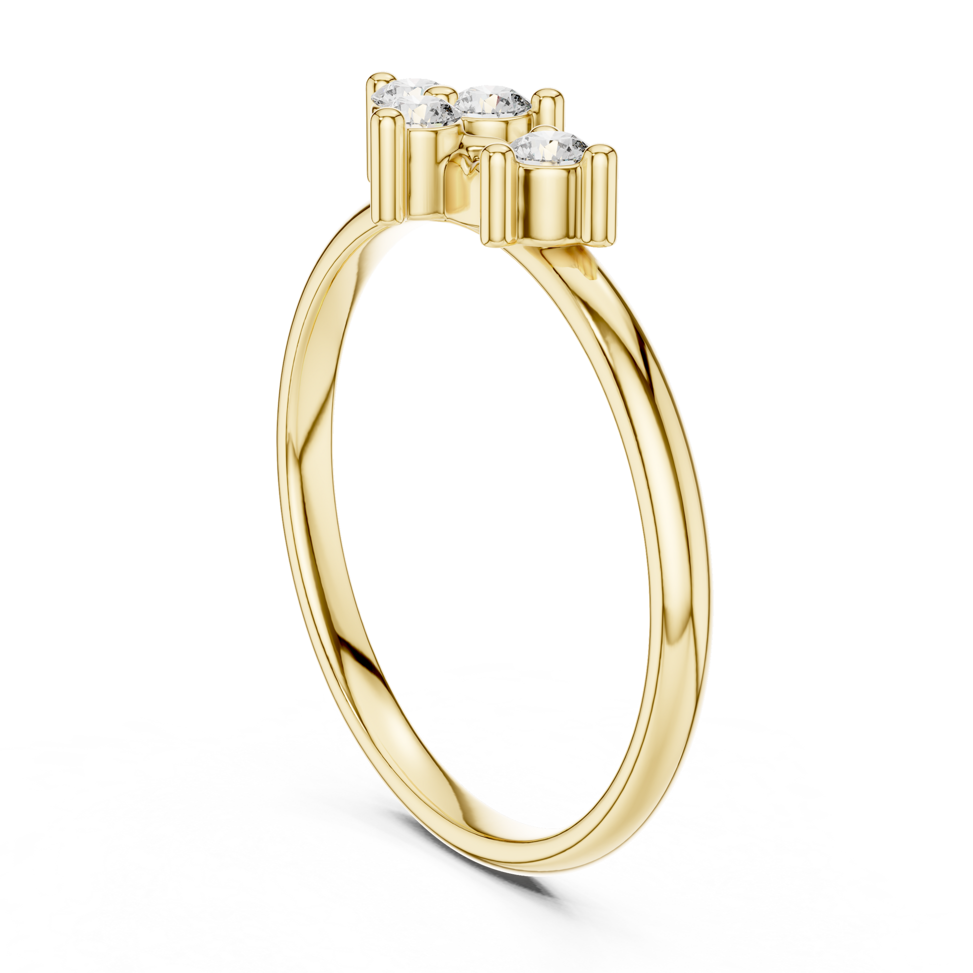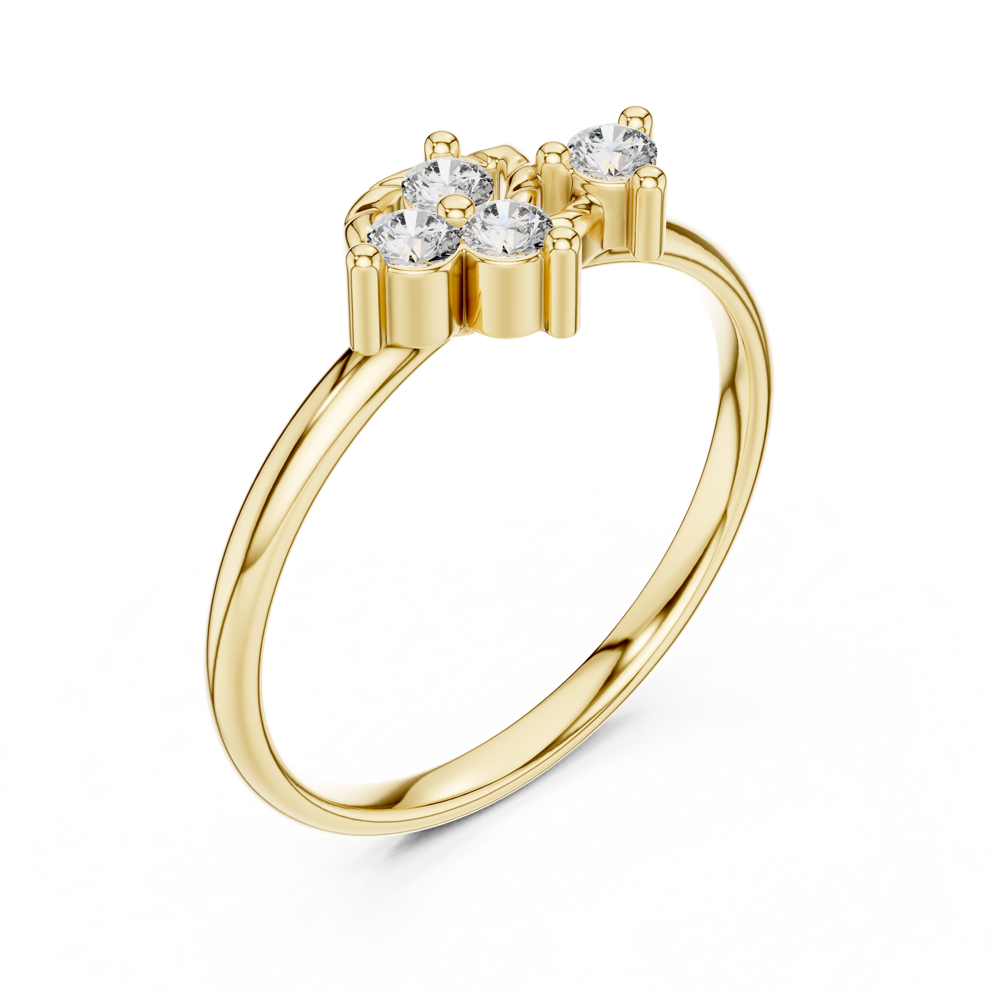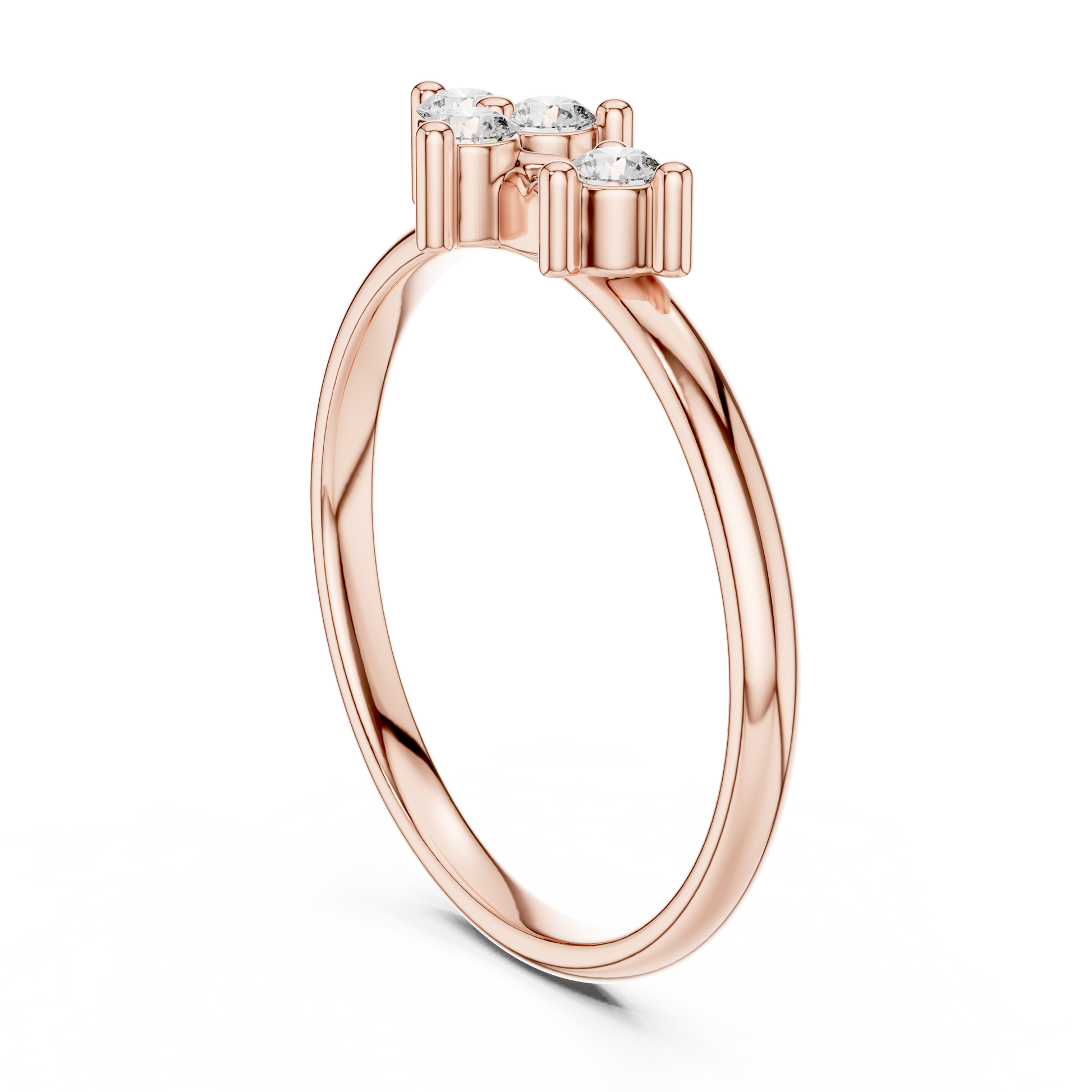 This stunning ring showcases a luxurious band gracefully embracing a delicate floral cluster of brilliant Round cut diamonds. Its design blends timeless elegance with a touch of modern artistry, highlighted by the soft curves and intricately crafted gold detailing around the stones. The cluster of diamonds adds a radiant sparkle, making this piece perfect for everyday sophistication or special occasions.