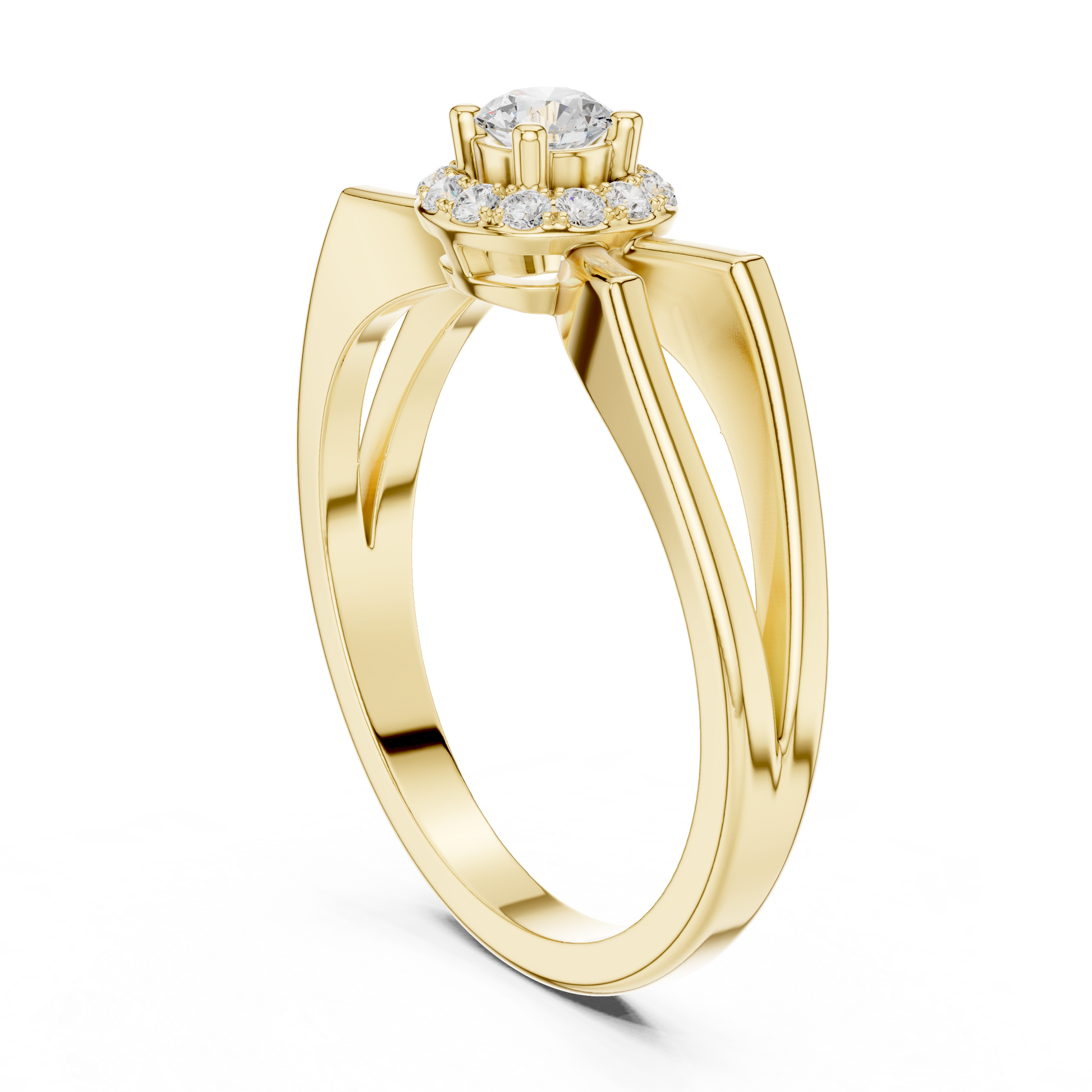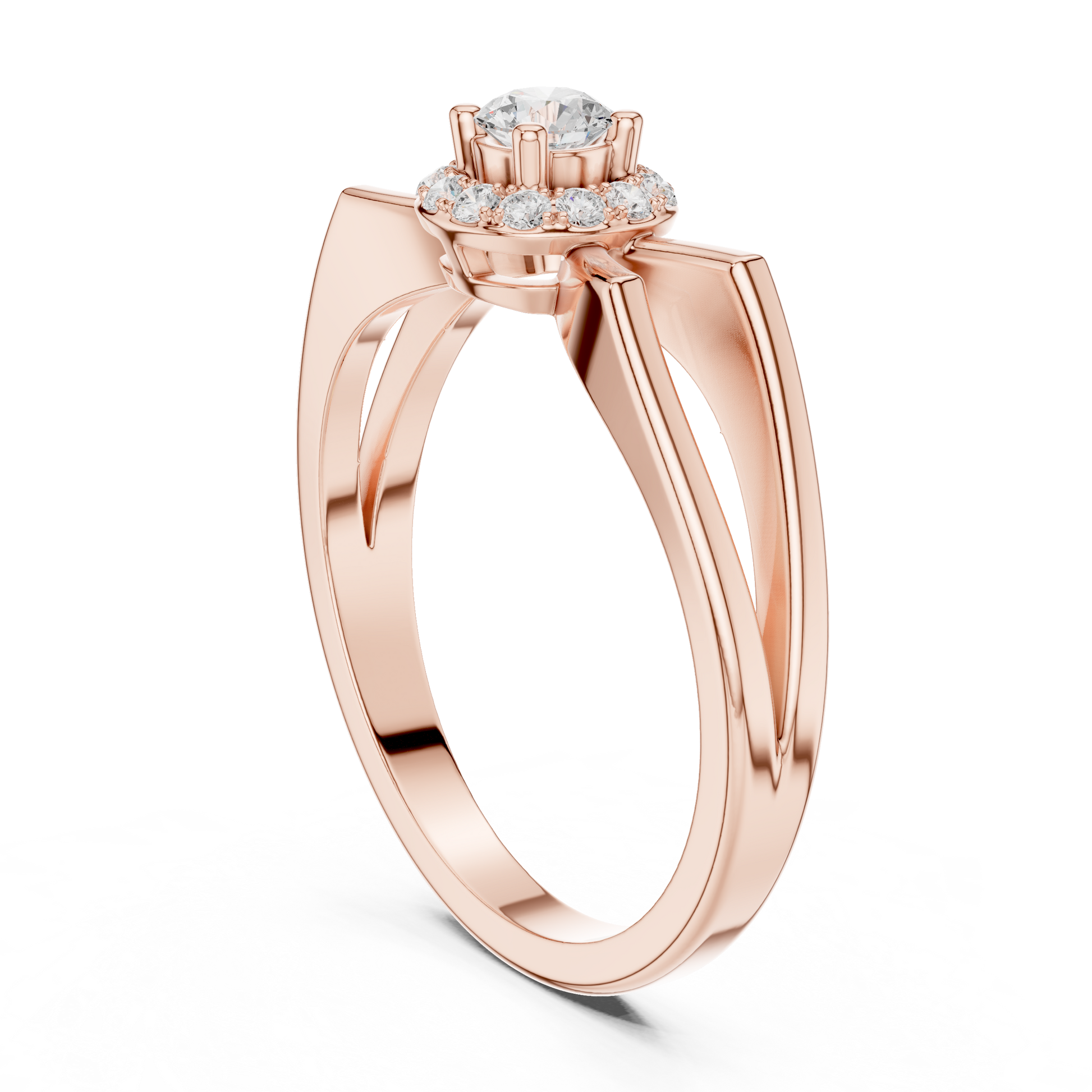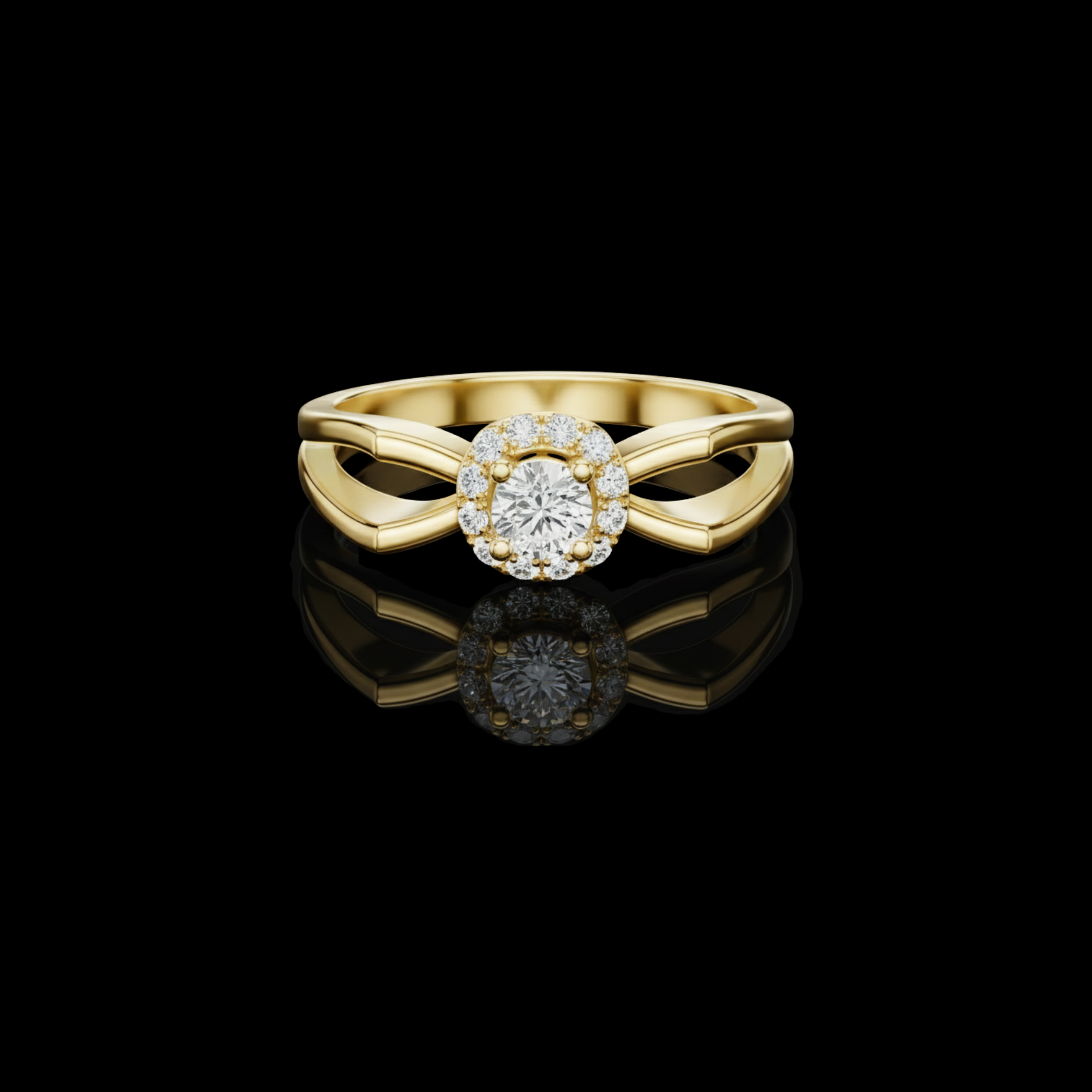 Elevate your style with this exquisitely designed halo diamond ring, where classic brilliance meets artistic form. At its heart lies a round brilliant center diamond, beautifully framed by a halo of pavé diamonds that enhances its radiance. The band features an elegant looped shoulder design, creating fluid lines that add depth, movement, and sophistication.Perfect for engagements, anniversaries, or meaningful celebrations, this ring reflects exceptional craftsmanship, refined elegance, and enduring beauty, making it a standout piece.