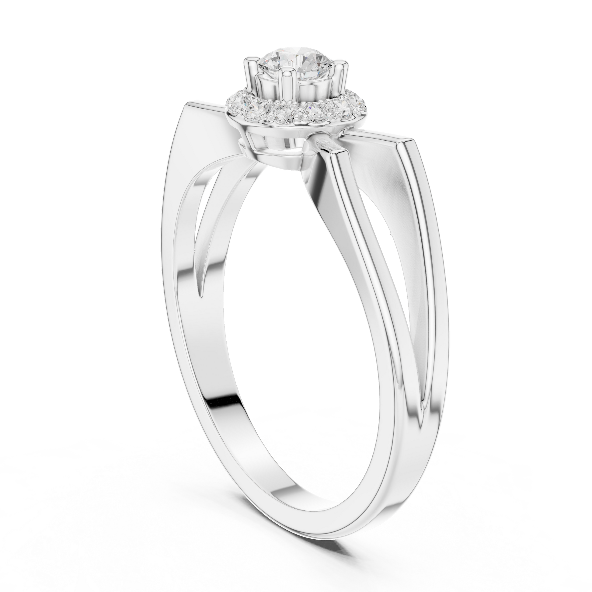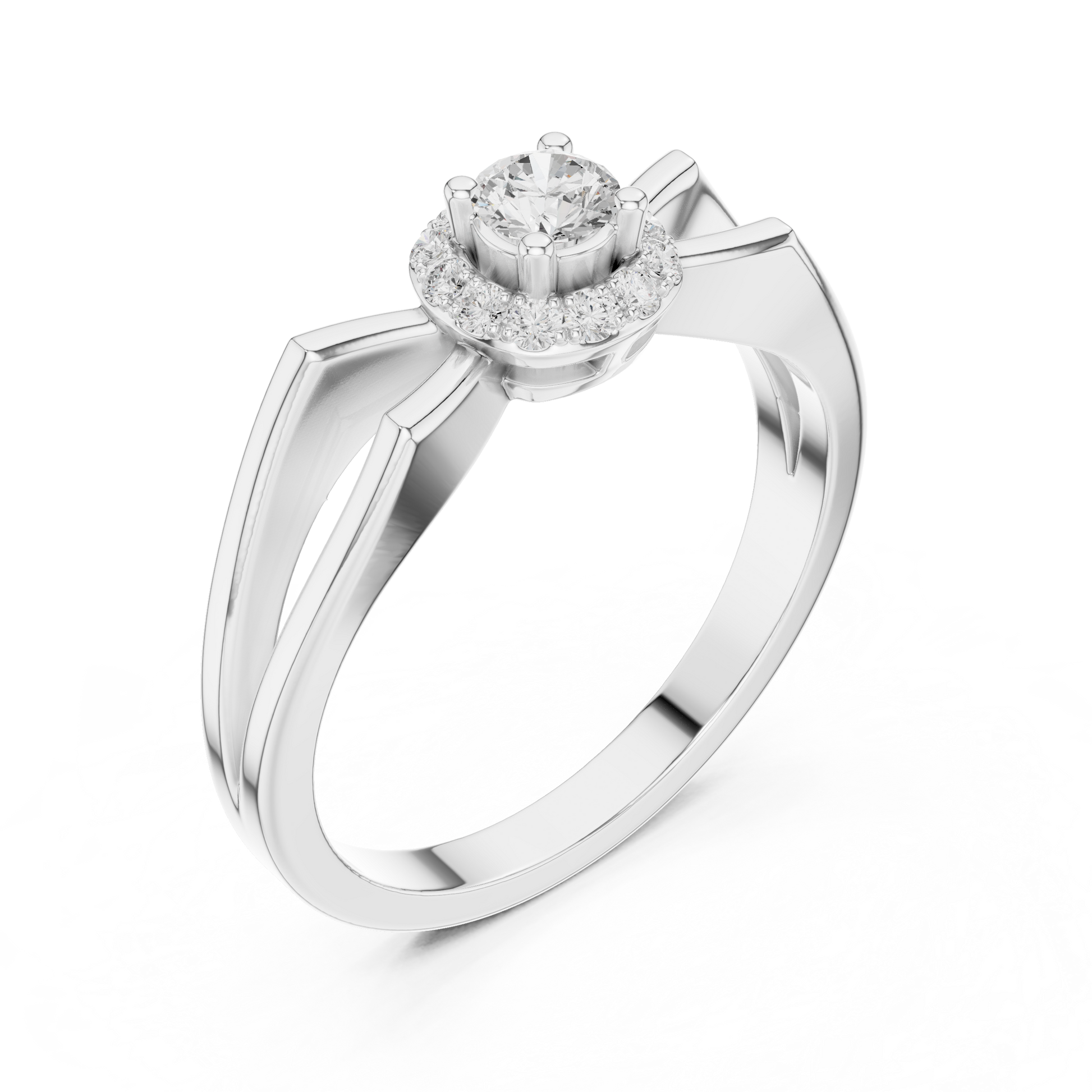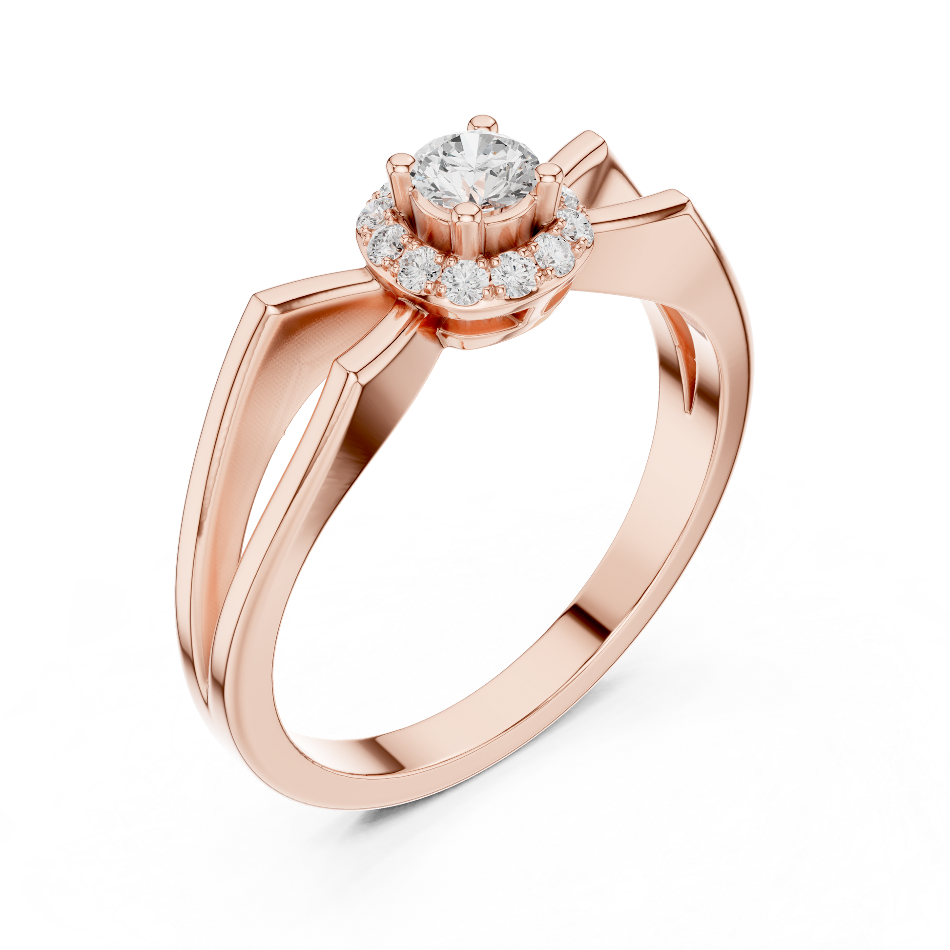 Elevate your style with this exquisitely designed halo diamond ring, where classic brilliance meets artistic form. At its heart lies a round brilliant center diamond, beautifully framed by a halo of pavé diamonds that enhances its radiance. The band features an elegant looped shoulder design, creating fluid lines that add depth, movement, and sophistication.Perfect for engagements, anniversaries, or meaningful celebrations, this ring reflects exceptional craftsmanship, refined elegance, and enduring beauty, making it a standout piece.